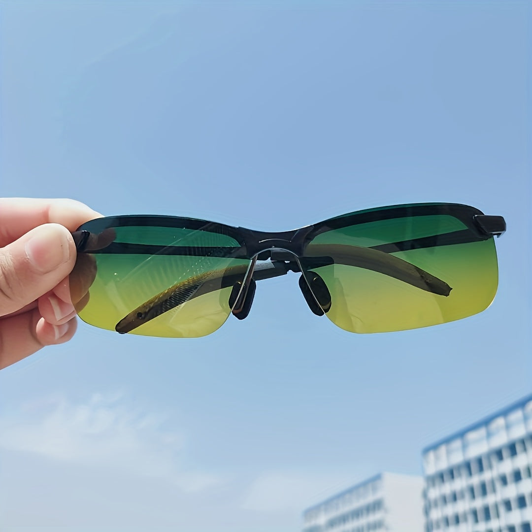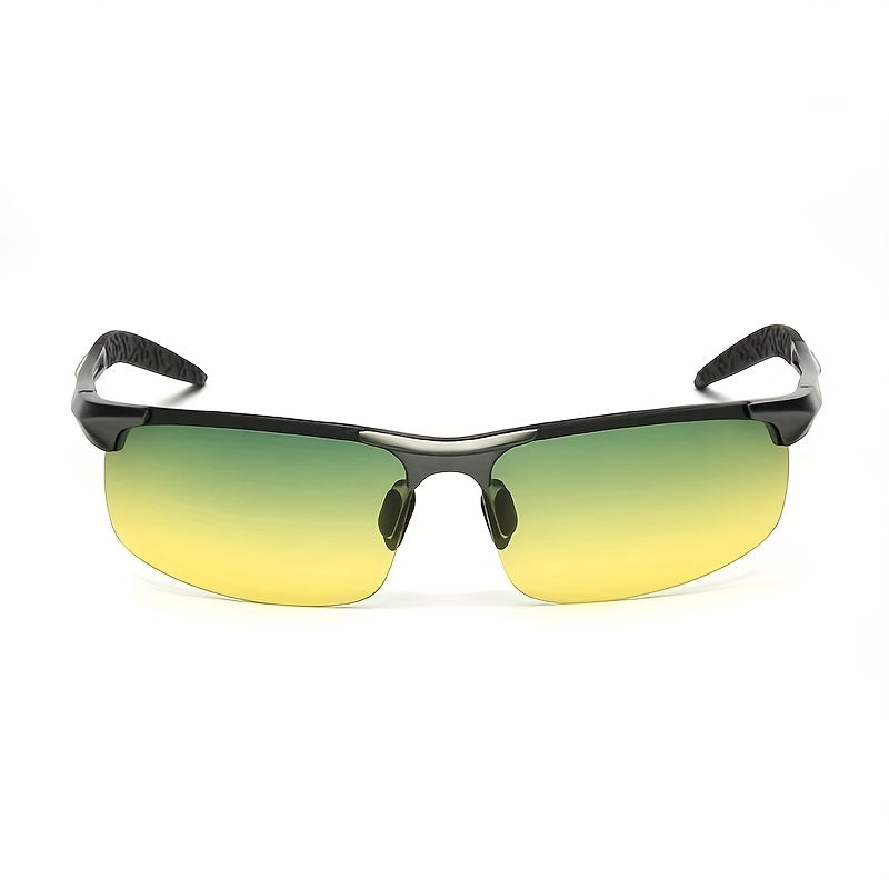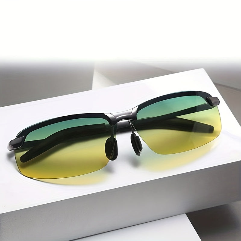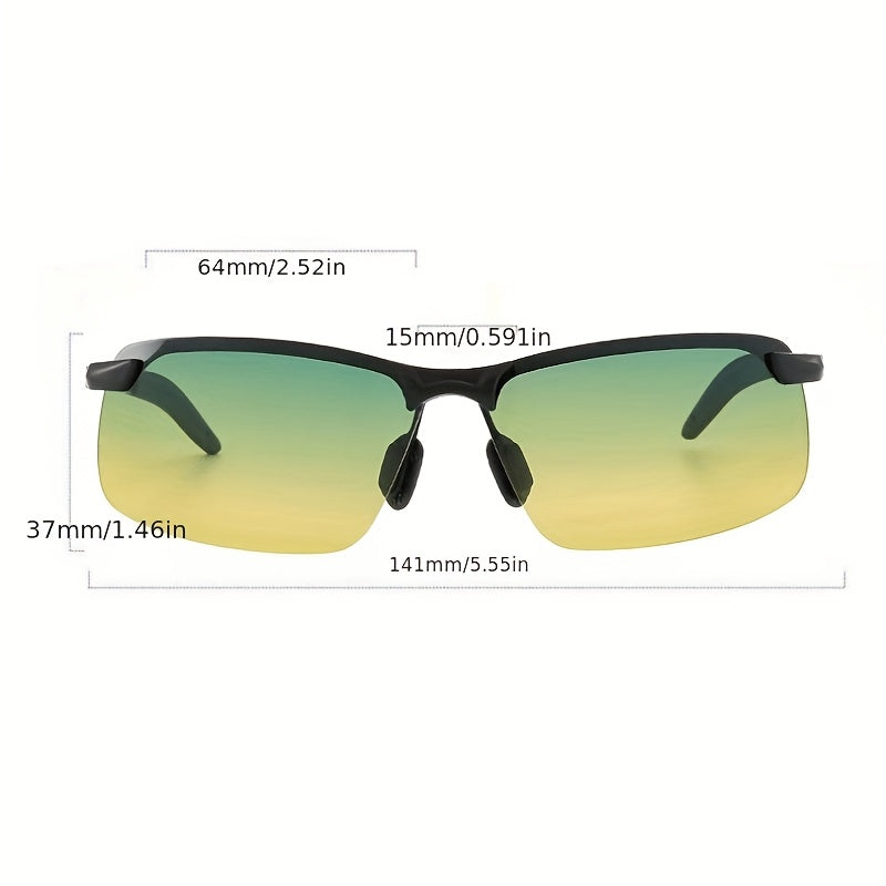 Kunduz va kechqurun haydash uchun mo'ljallangan, erkaklar va ayollar uchun mos, kvadrat ramkali va sozlanadigan burun yostiqchalari va quloq yostiqlari bilan ajralib turadigan modali sariq rangli ko'zoynaklar. Haydash uchun mukammal.
