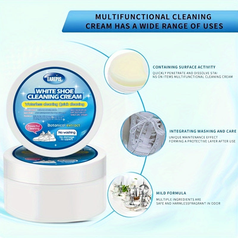 Tez Ta'sirli Oq Poyabzal Kreml - Dog'larni olib tashlaydi va oq rangni tiklaydi, Krossovkalar, Kanvas va Sun'iy Materiallar uchun ideal - Qo'shimcha Tozalash Gubkasi bilan qulay yuvishsiz formula