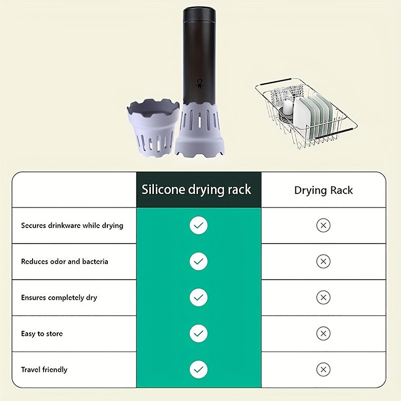 Tez quriydigan silikon ushlagich suv idishlari va piyolalar uchun - Shisha idishlar, piyolalar va boshqa narsalar uchun ko'p maqsadli tokcha - Tozalash oson, yig'ilishi mumkin - To'rt rangda mavjud: yashil, kulrang, pushti va binafsha.
