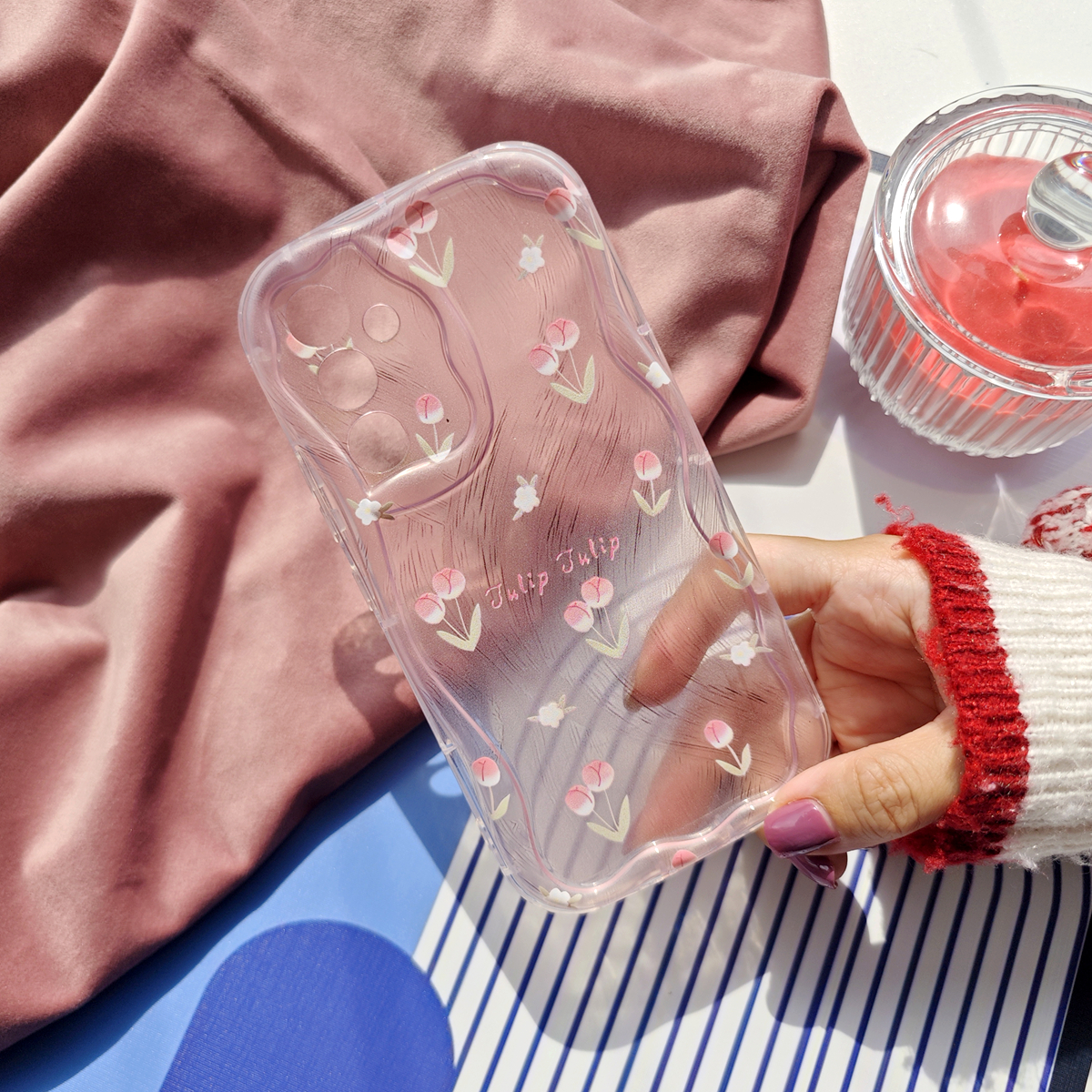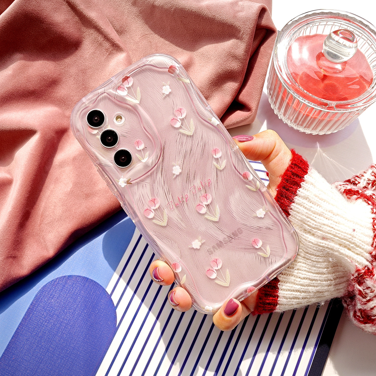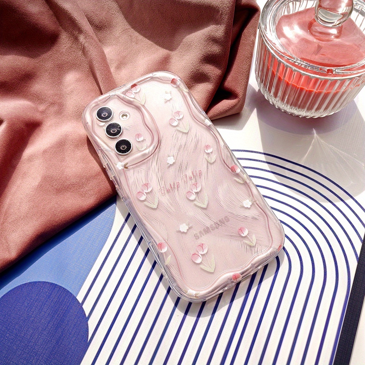 Feather Yarn Pink Kichik Gul Tulip Gullar Telefon Qopqog'i Samsung, TECNO, Infinix, OPPO, VIVO va boshqalar uchun.