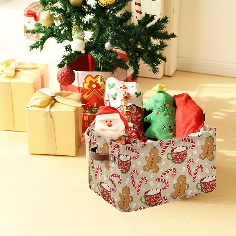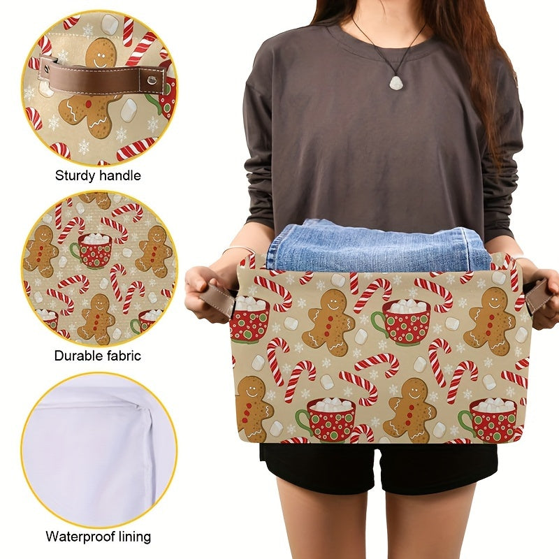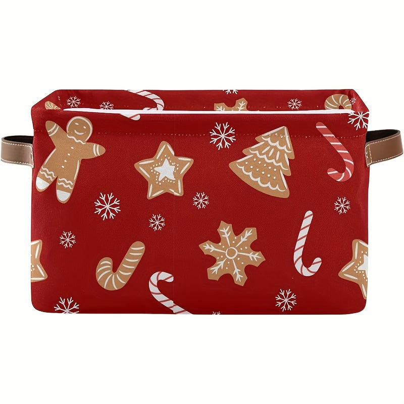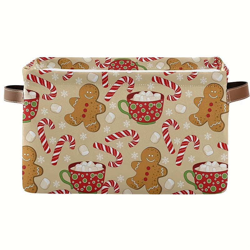 Bayram Shirinlik Qandli Qalam va Qor To'pi Saqlash Savati - Egiluvchan Sun'iy Charmli Qo'ltiq, Suvga Bardoshli Kanvas, Shkafni Tashkil Etish, O'yinchoq Saqlash, Kiymish, Xonani Bezaklash yoki Sovg'a Berish uchun.