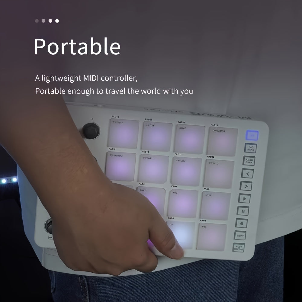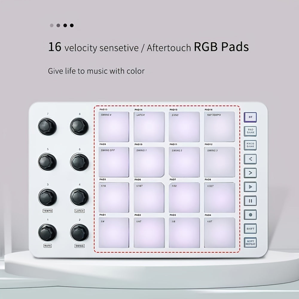 FF Bonfires Portativ MIDI Kontroller: 16 Baraban Padlari, 8 Boshqaruv Tugmalari, USB Quvvatlanadi, Qayta Zaryadlanadigan Batareya