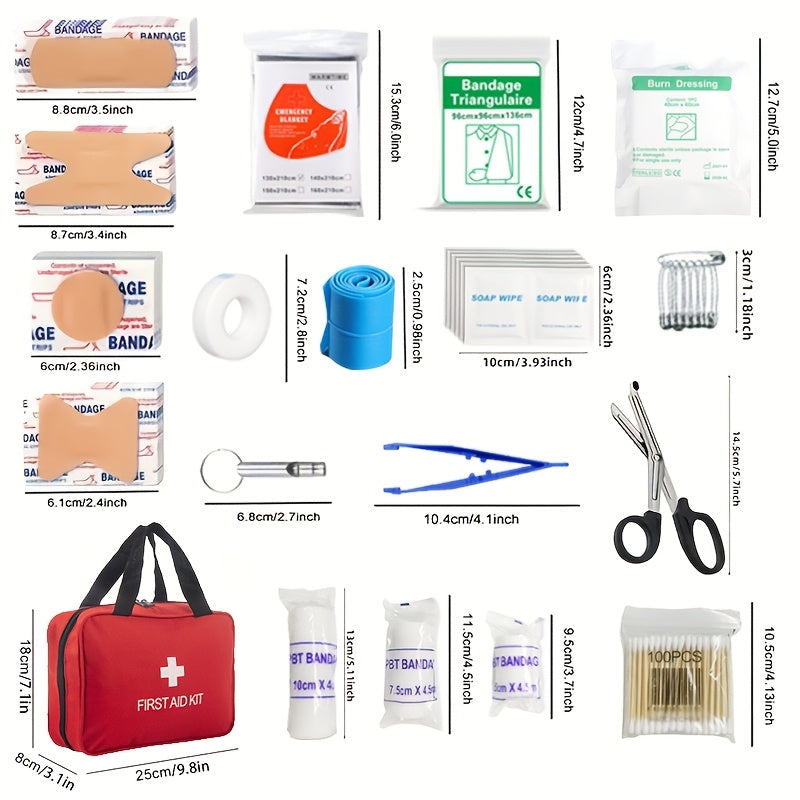 Uyda, mashinada, piyoda sayr qilishda yoki lagerda tibbiy favqulodda vaziyatlar uchun 59, 200 yoki 210 dona birinchi yordam to'plamlari.