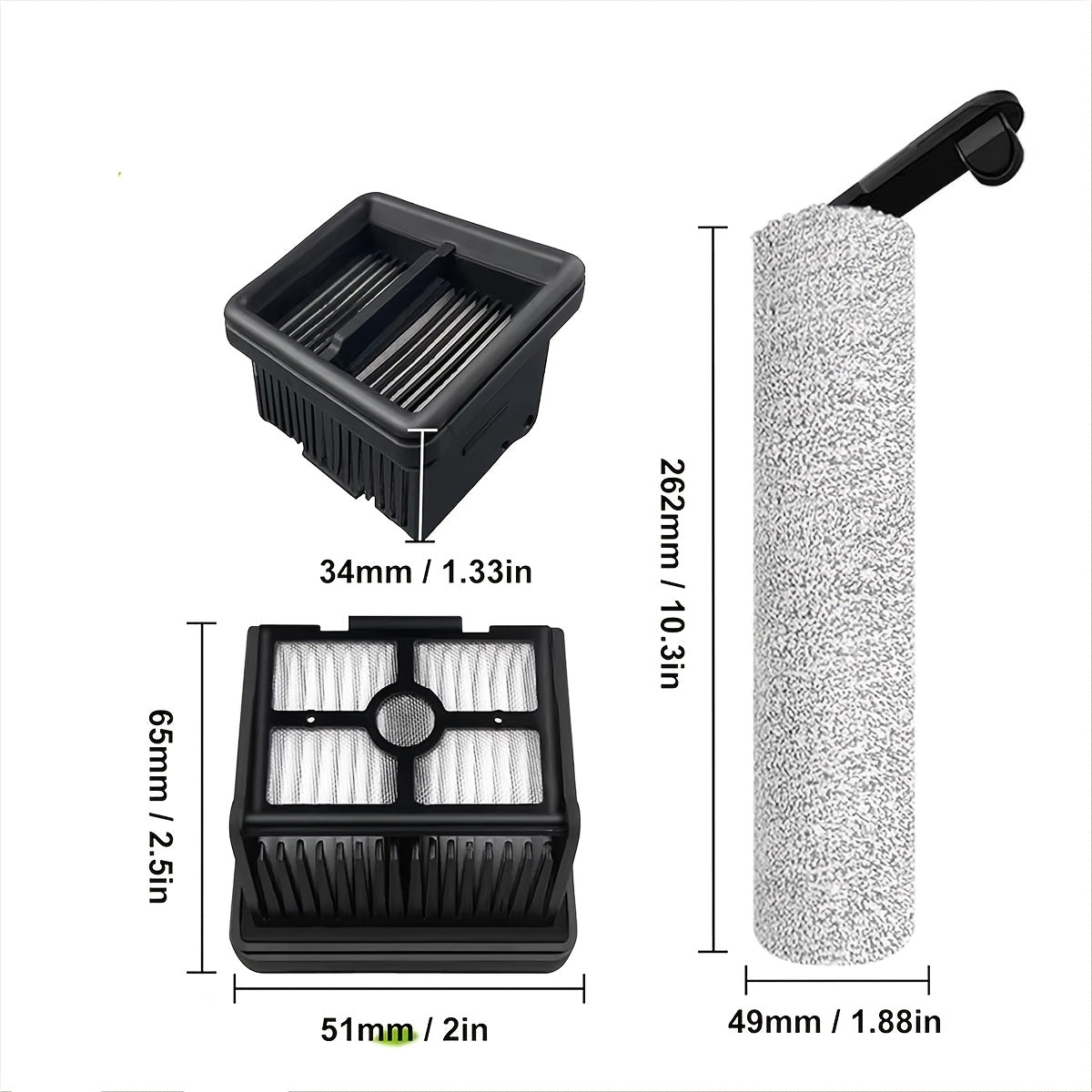 Dreame H12 Pro/H12 Plus filtr kartuşi uchun mos keladigan yumshoq tikanli rolikli cho'tka, quruq/ho'l ikki tomonlama foydalanish uchun vakuum tozalagich Hepa filtr aksessuarlar