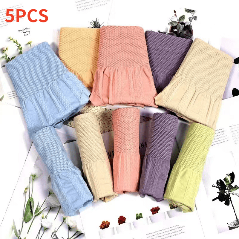 Besh dona aralash rangli yuqori beldagi ayollar ichki kiyimlari, tikuvsiz, yuqori elastiklikka ega va belni shakllantirish va toraytirish uchun eukalipt qismi bilan.