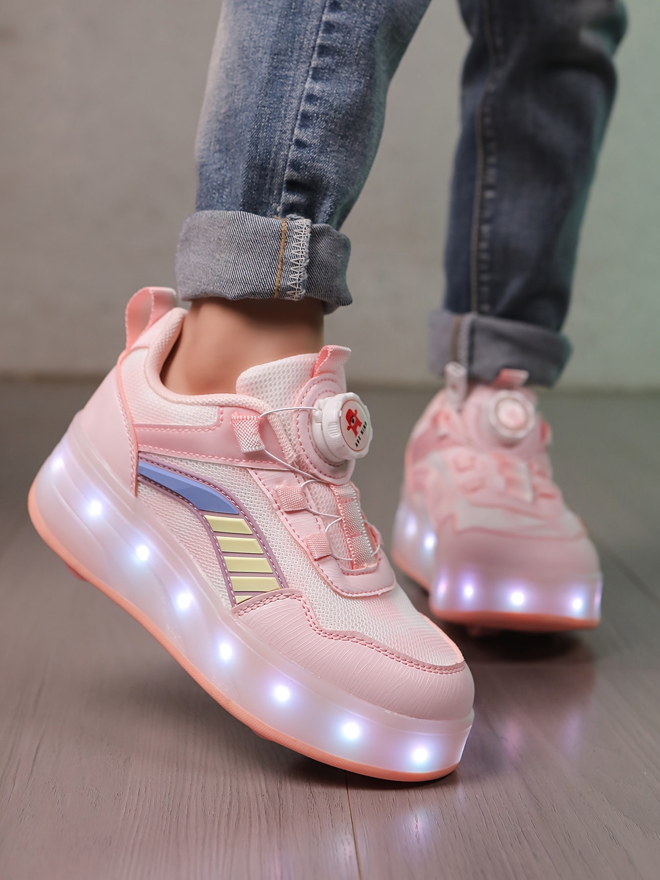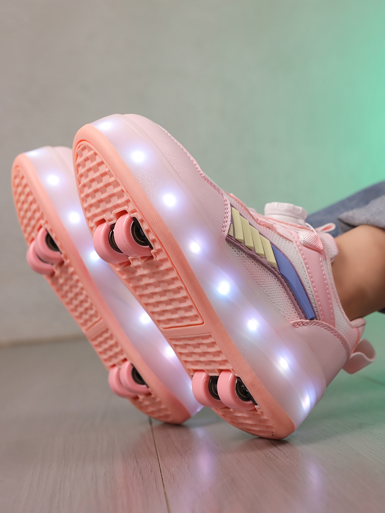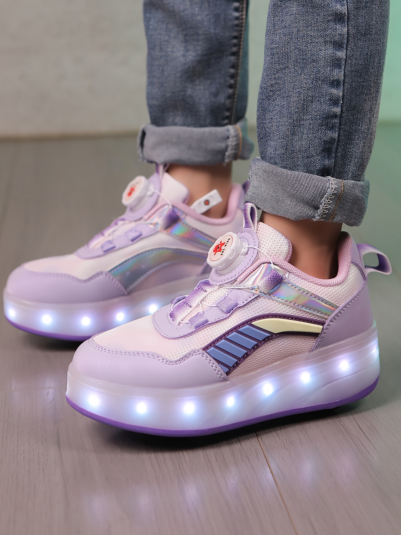LED chiroqlari bilan Flash rolikli konkilar, USB orqali zaryadlanadigan, 14 yoshgacha bo'lgan bolalar uchun ichki va tashqi skeyting uchun mos.