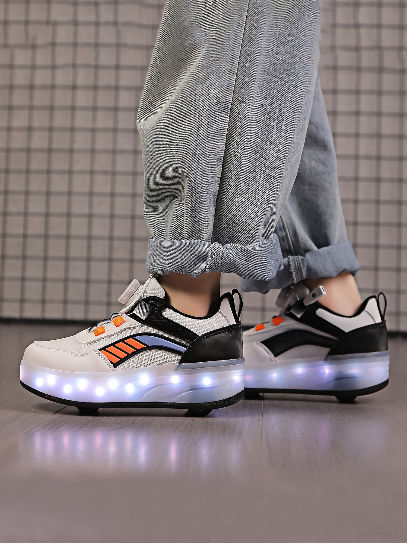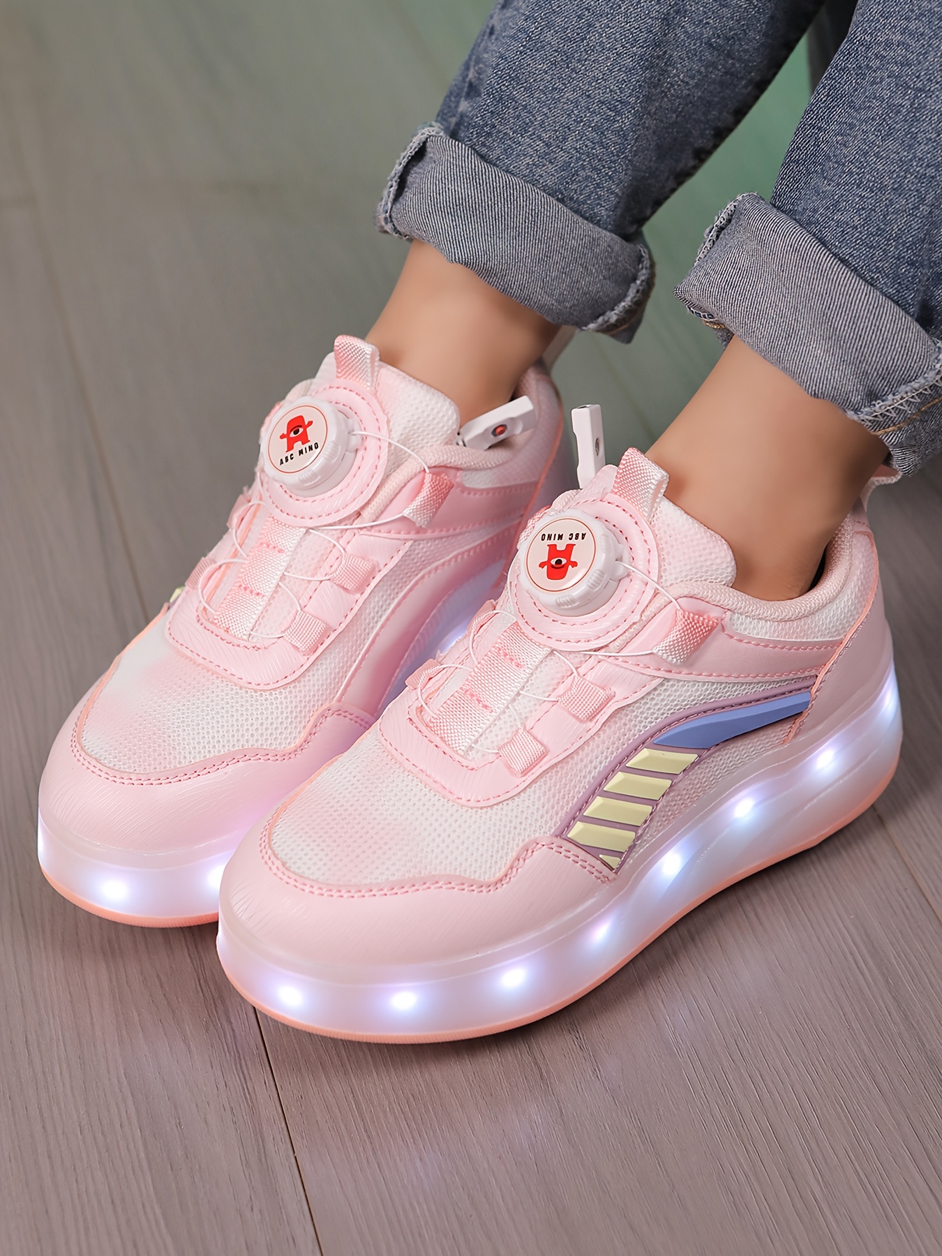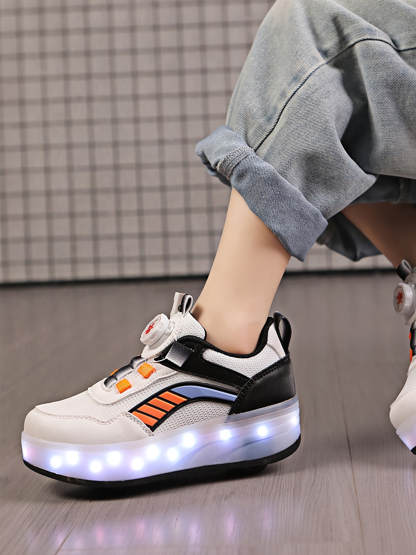 LED chiroqlari bilan Flash rolikli konkilar, USB orqali zaryadlanadigan, 14 yoshgacha bo'lgan bolalar uchun ichki va tashqi skeyting uchun mos.