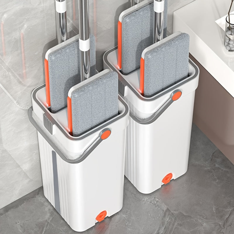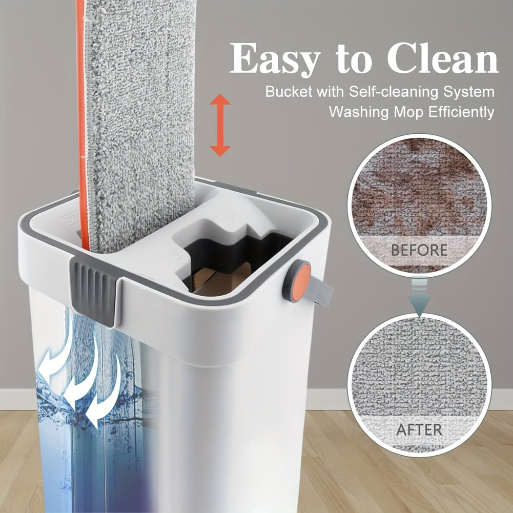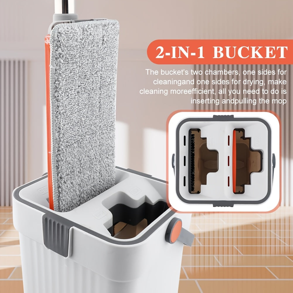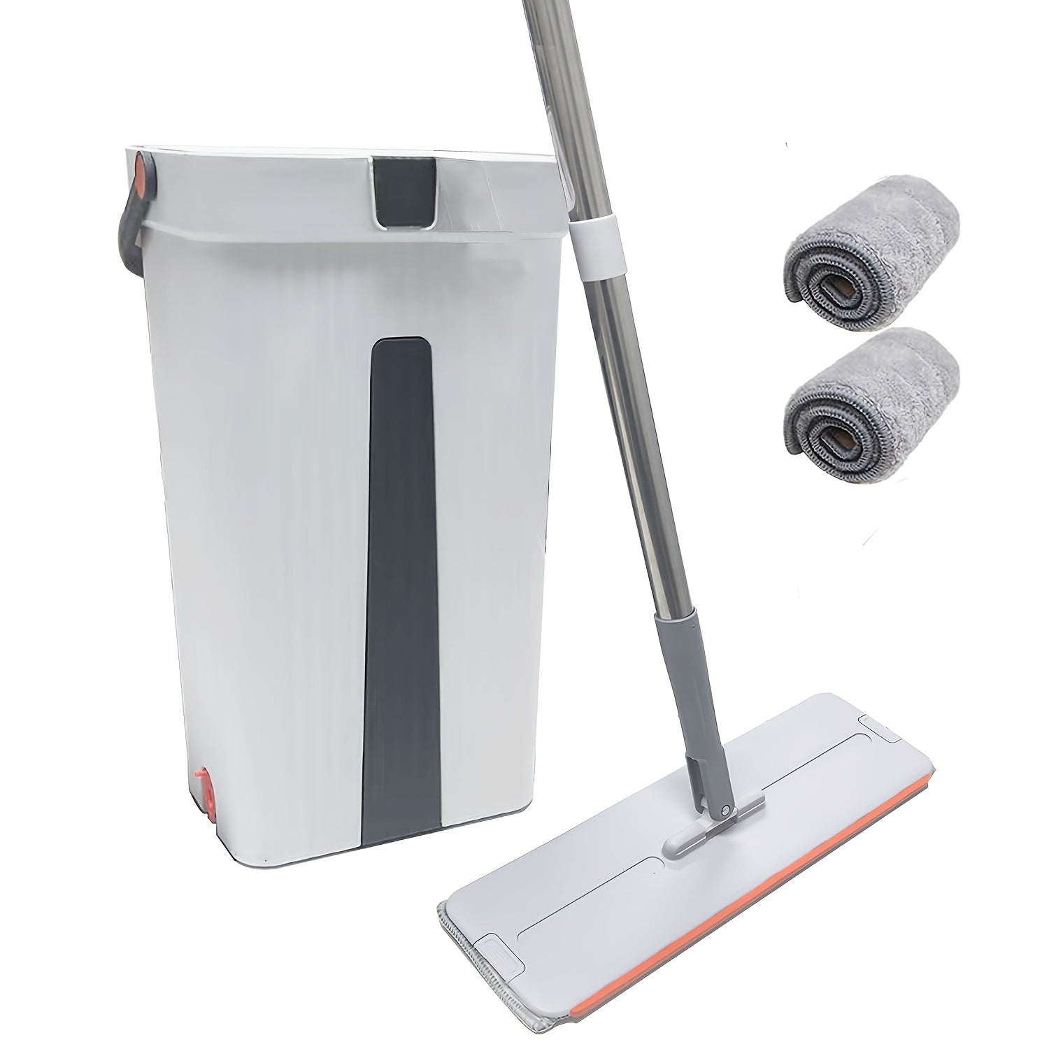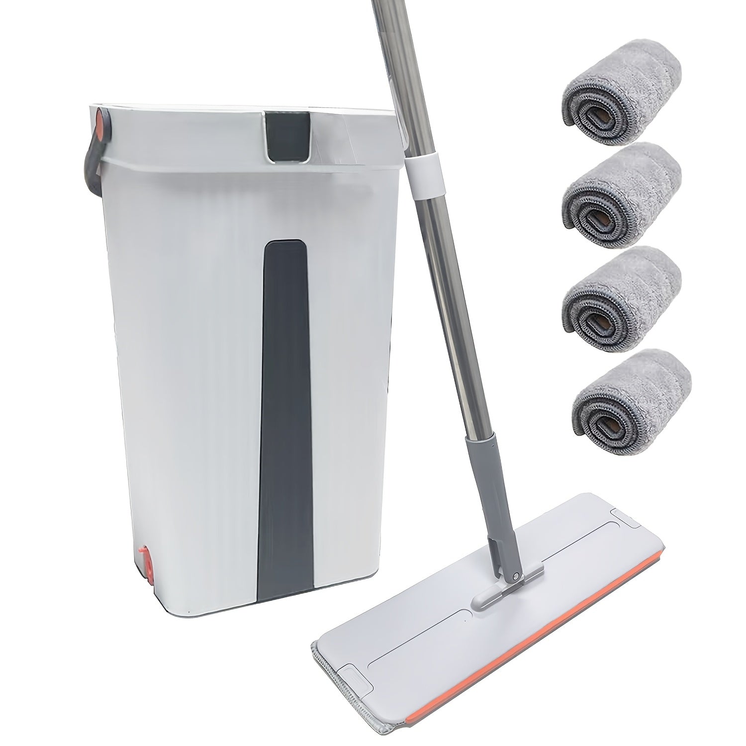 Yassi mop va kova to'plami, Wringer bilan, 132cm tutqich, qayta ishlatiladigan mikrotoʻlqinli padlar