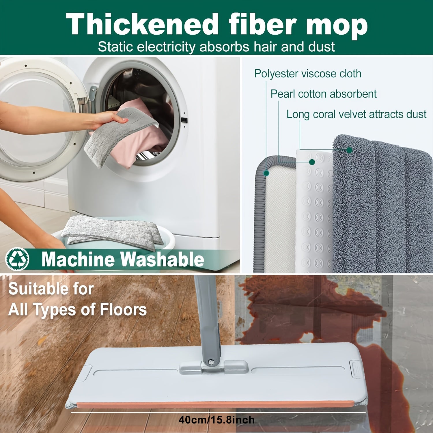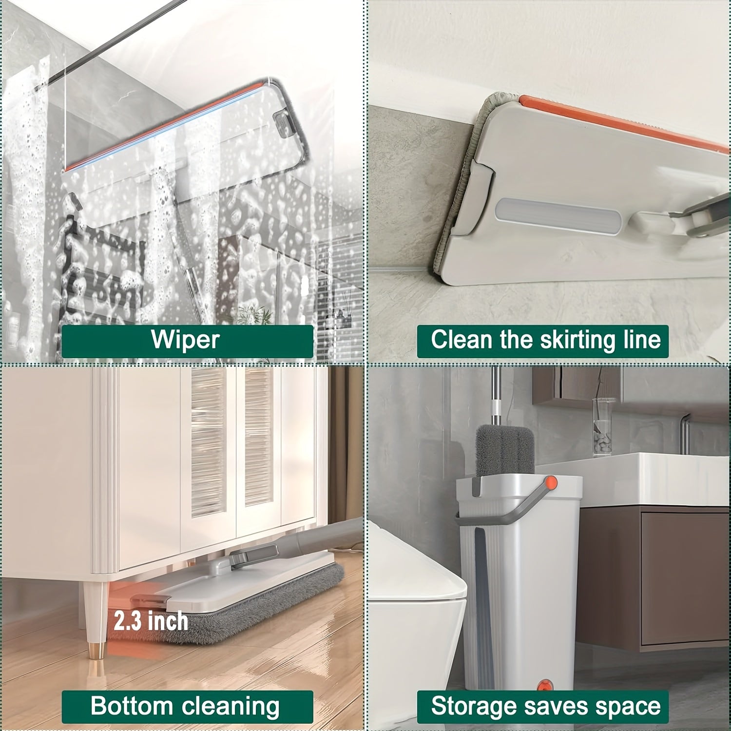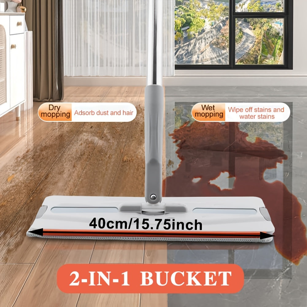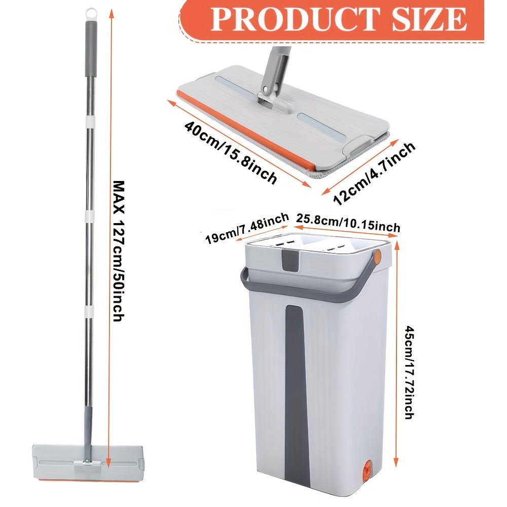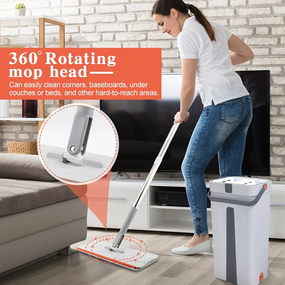 Yassi mop va kova to'plami, Wringer bilan, 132cm tutqich, qayta ishlatiladigan mikrotoʻlqinli padlar