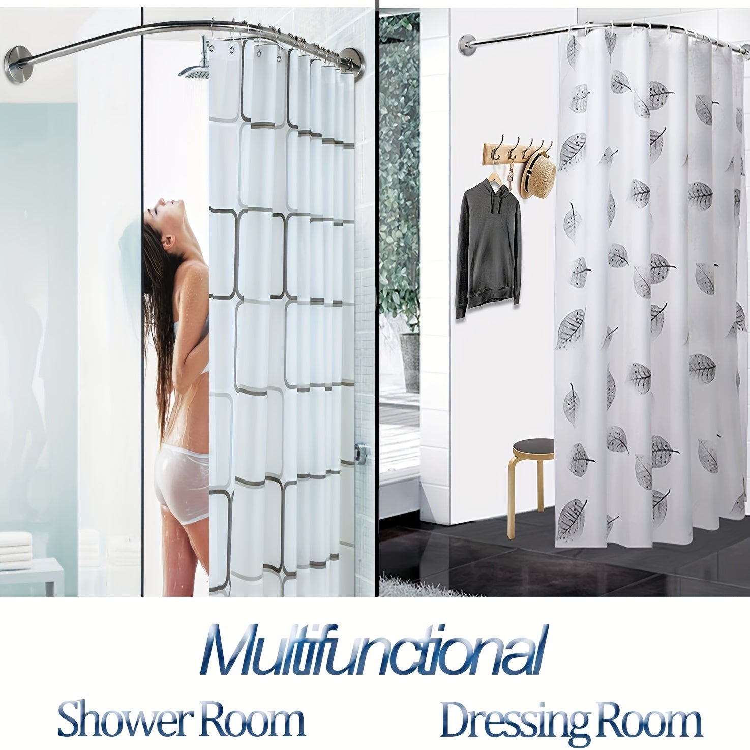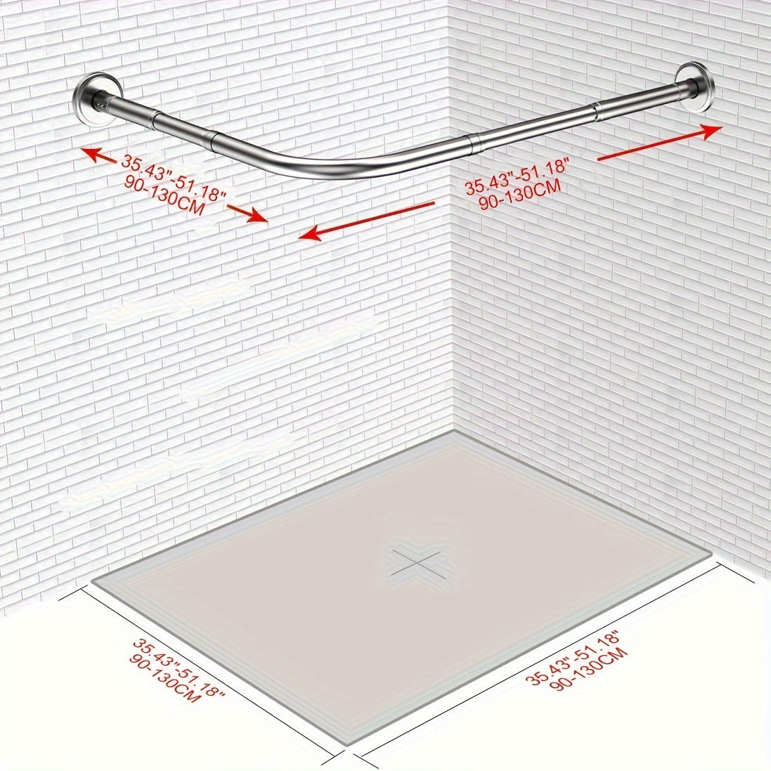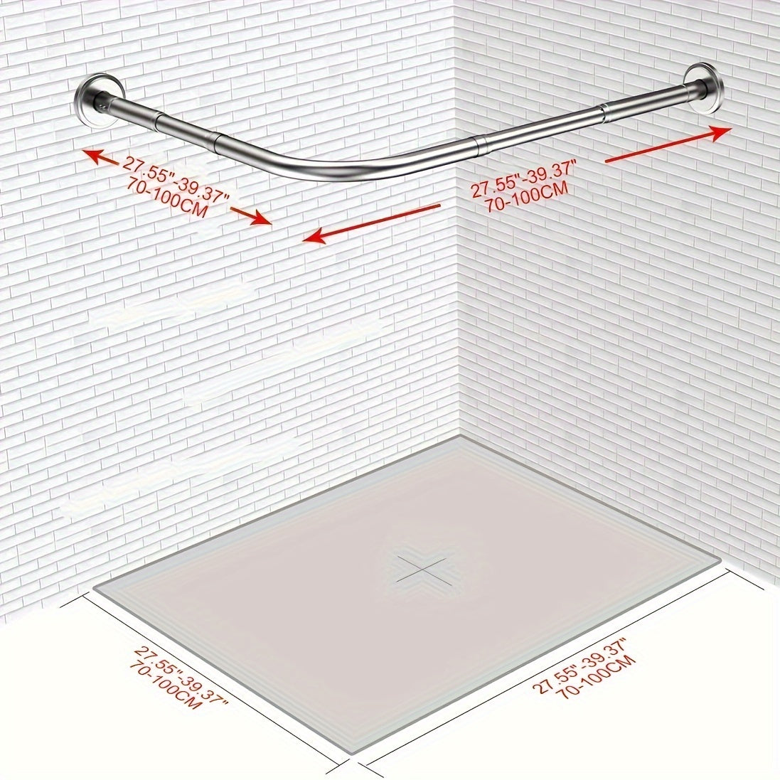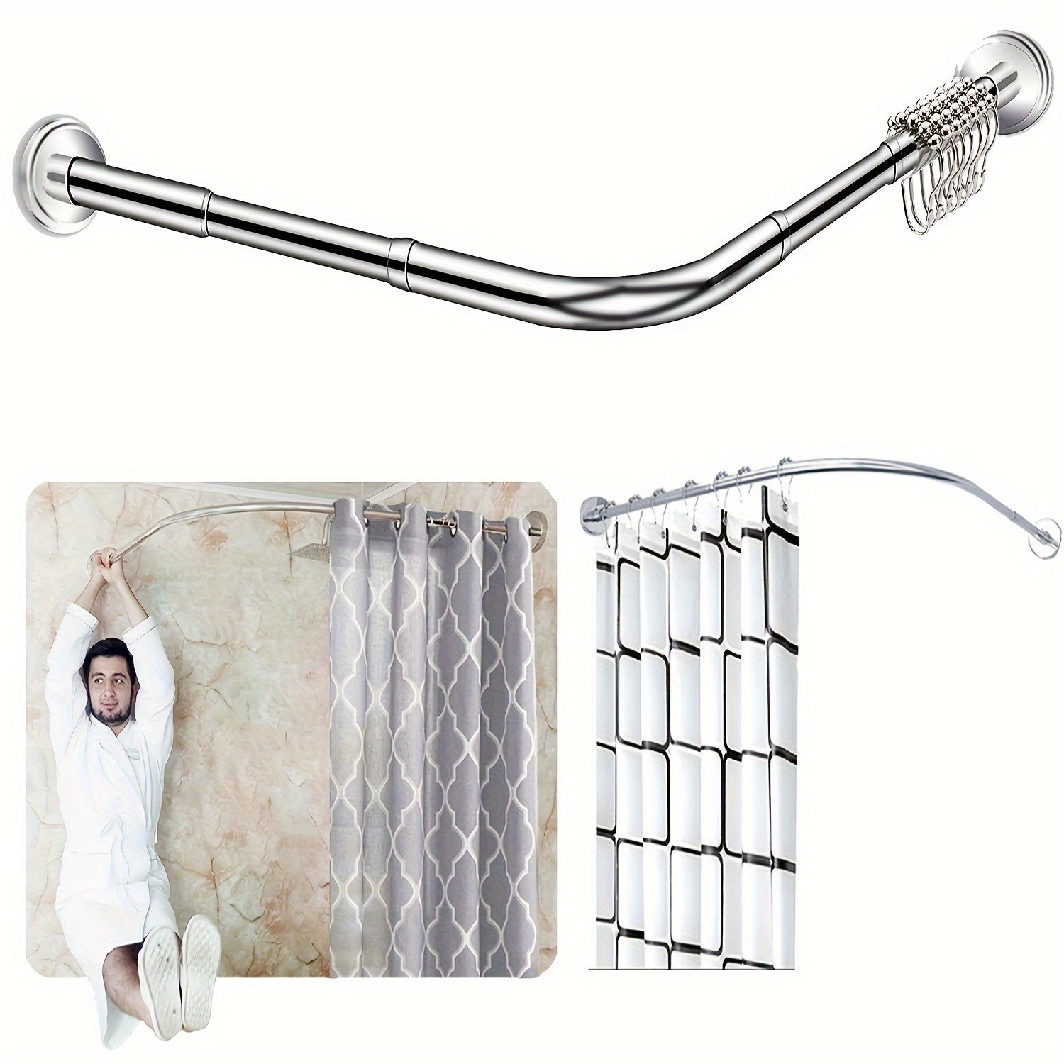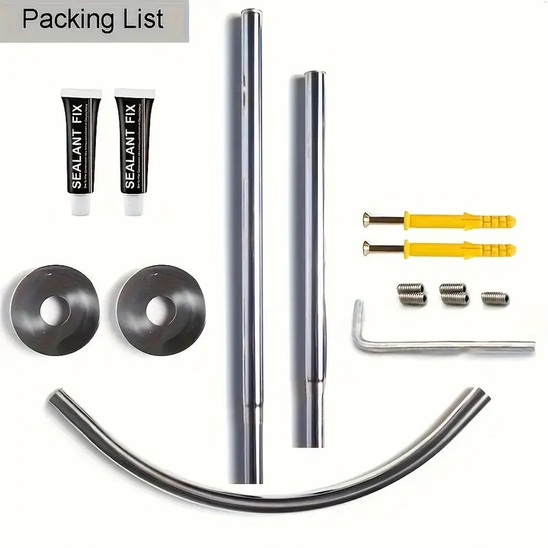 Oson o'rnatish uchun burg'ulashsiz moslashuvchan L-shaklidagi zanglamas po'latdan yasalgan dush pardasi tutqichi. Hammomlar, kiyim do'konlari va shaxsiy joylarda foydalanish uchun sozlanadigan o'lcham. O'rnatish uchun 5 ta vintni o'z ichiga oladi.