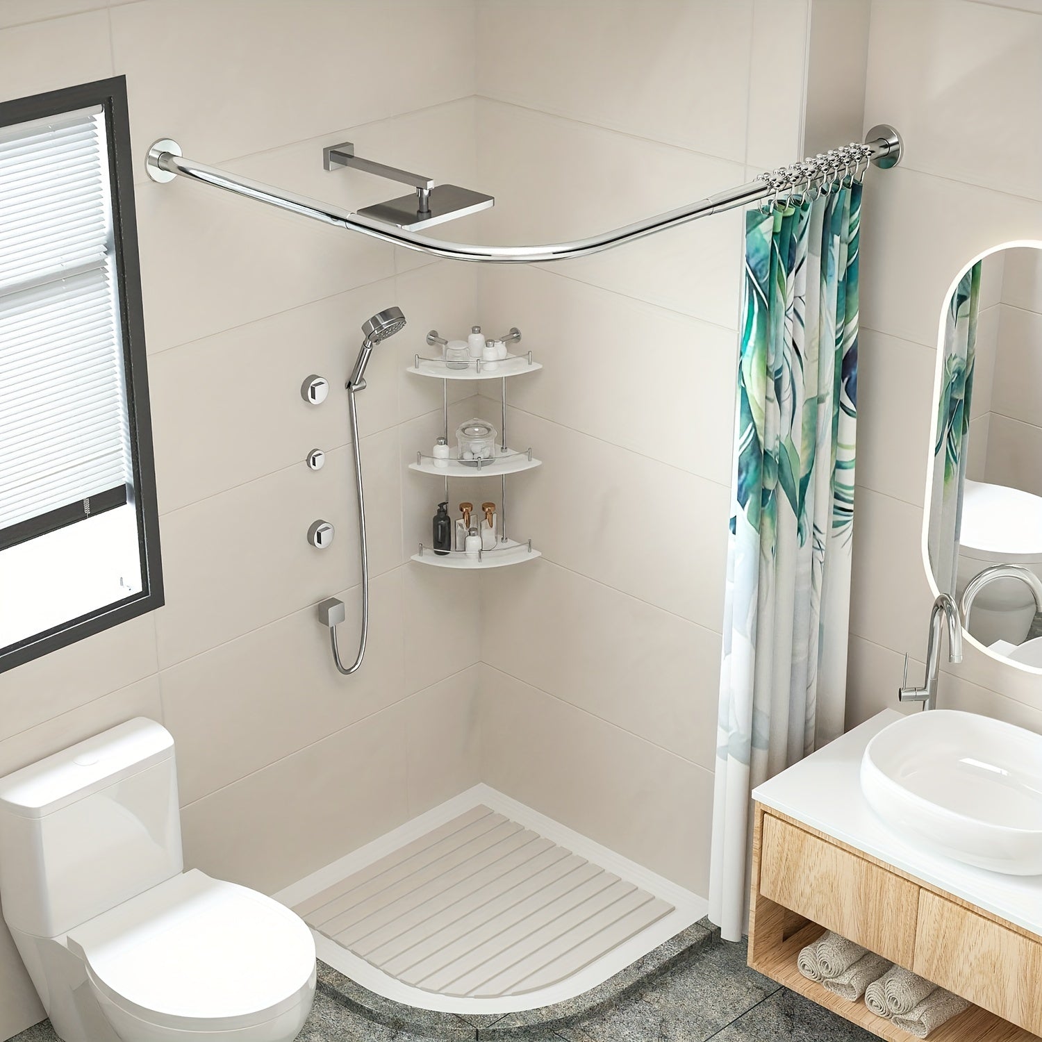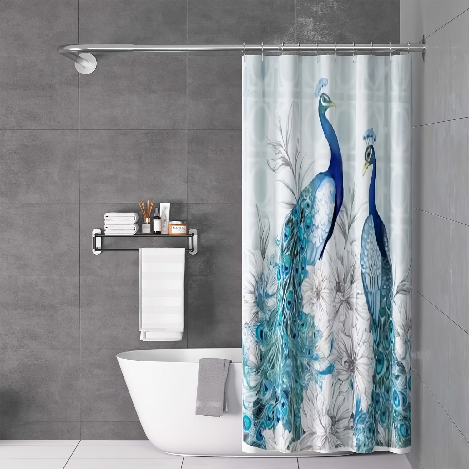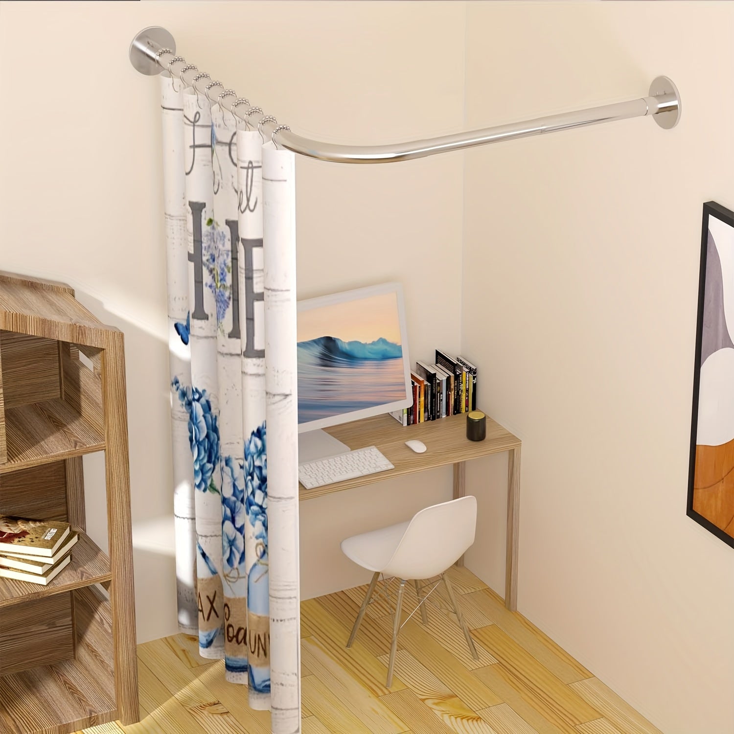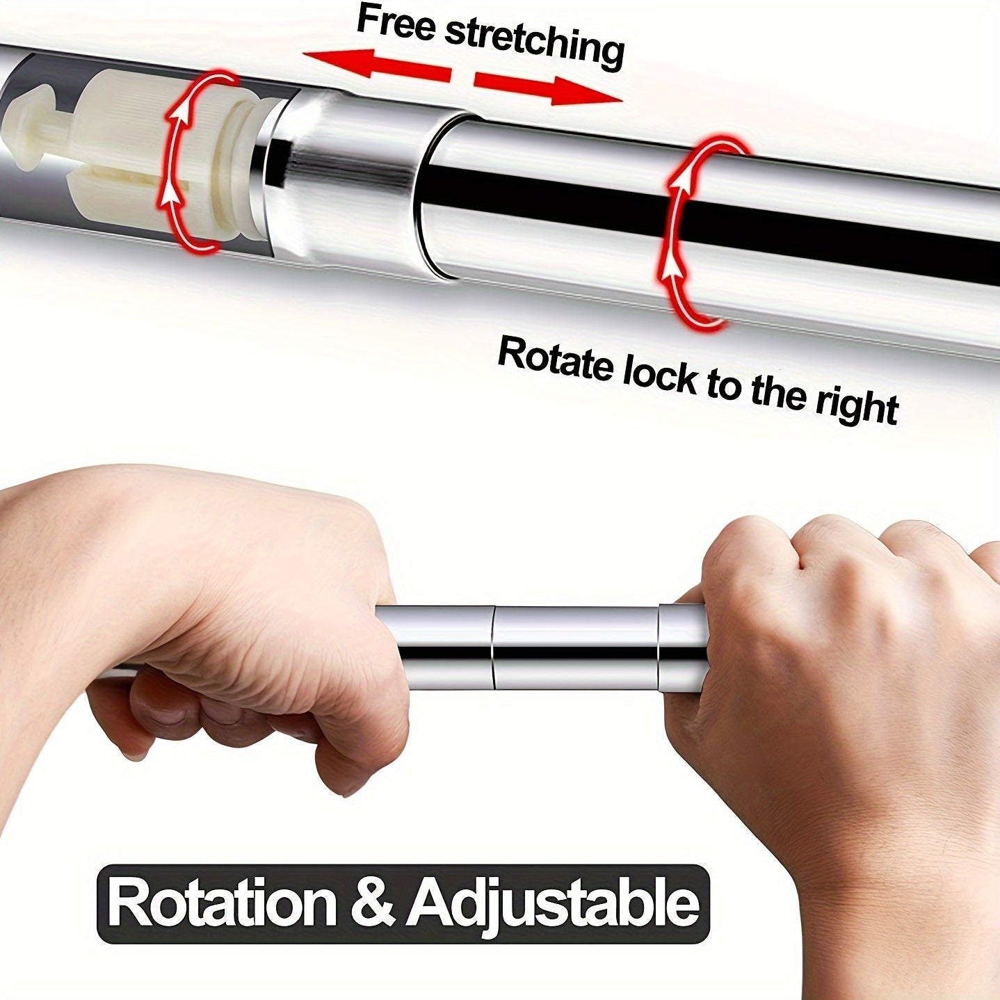 Oson o'rnatish uchun burg'ulashsiz moslashuvchan L-shaklidagi zanglamas po'latdan yasalgan dush pardasi tutqichi. Hammomlar, kiyim do'konlari va shaxsiy joylarda foydalanish uchun sozlanadigan o'lcham. O'rnatish uchun 5 ta vintni o'z ichiga oladi.