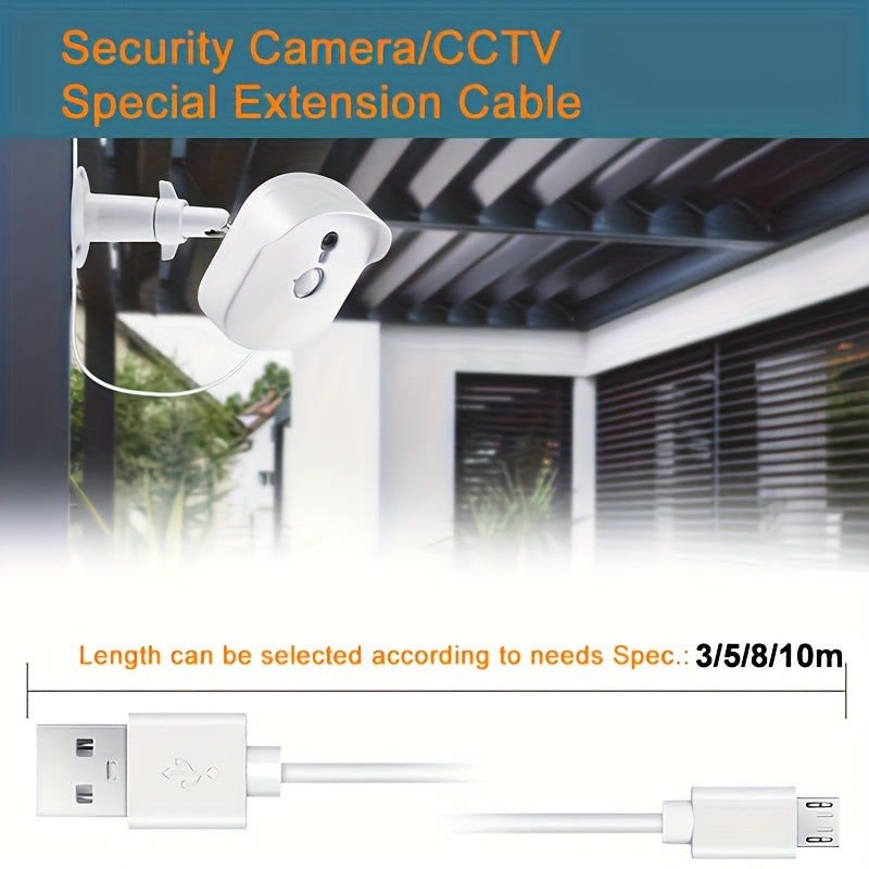 Moslashuvchan Micro-USB Kamera Quvvat Kabeli - Uzaytirilgan uzunliklar mavjud, 5V mosligi, oq, uy xavfsizlik kameralariga mo'ljallangan.