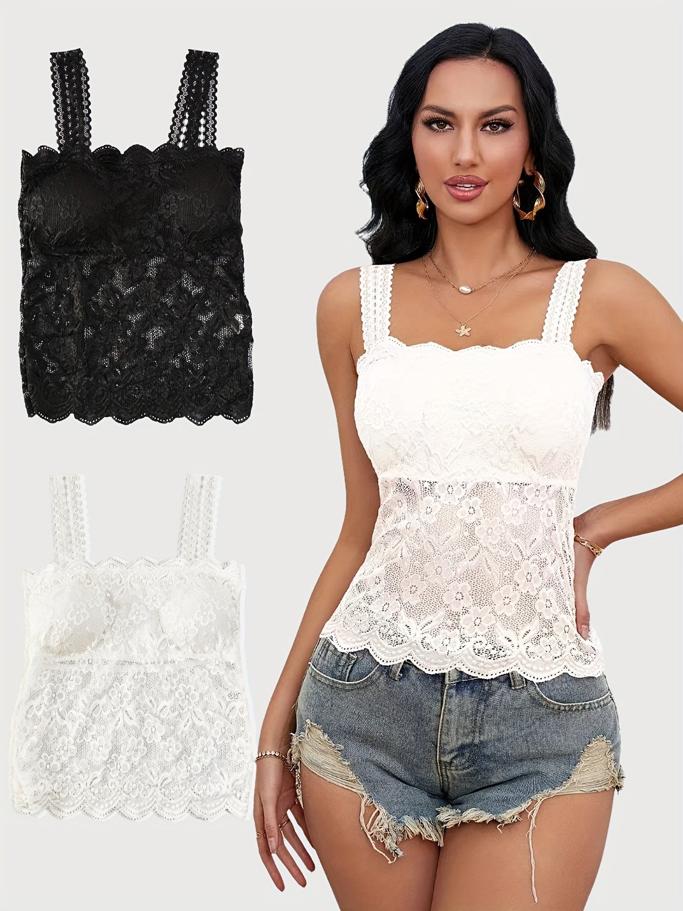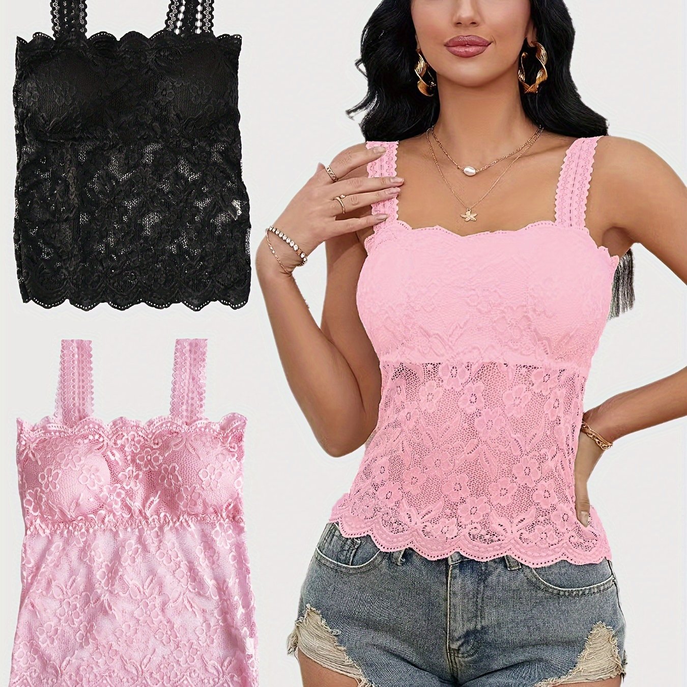 Ayollar uchun qora va pushti rangdagi olib tashlanadigan yostiqli flirtli dantel kamisol ko'ylaklar, gullar kesilgan dizayni va dantel bezaklari bilan.