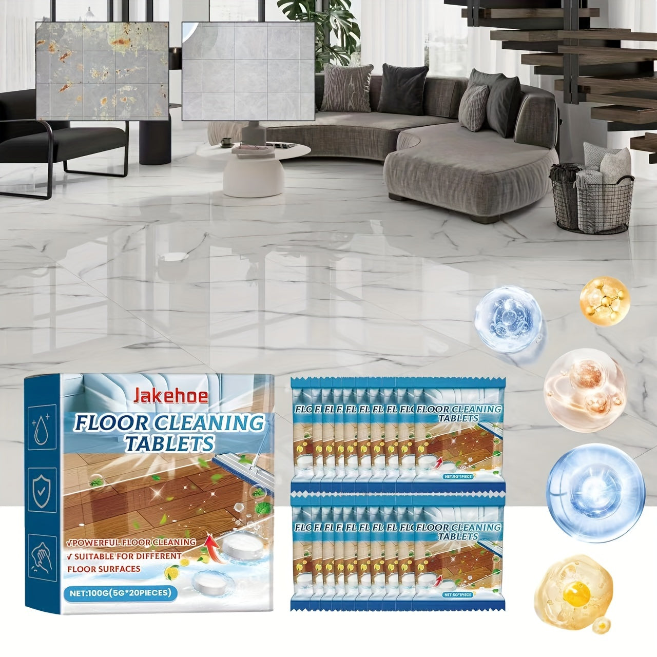Bir nechta sirtlar uchun polni tozalash varaqalari - kafel va yog'och pollarni parlatish va uyda dog'larni olib tashlash uchun ideal.