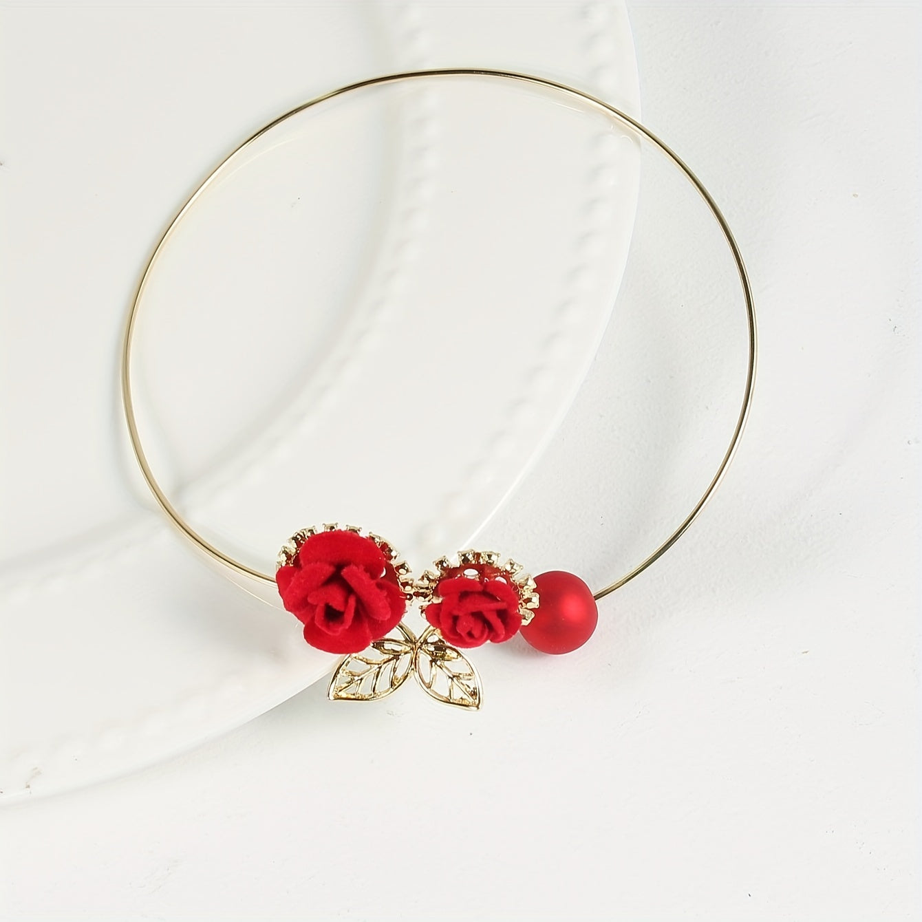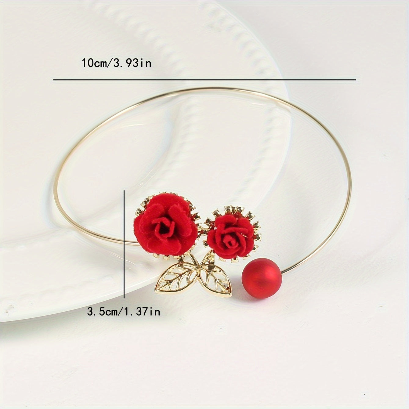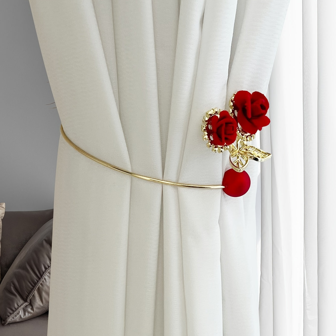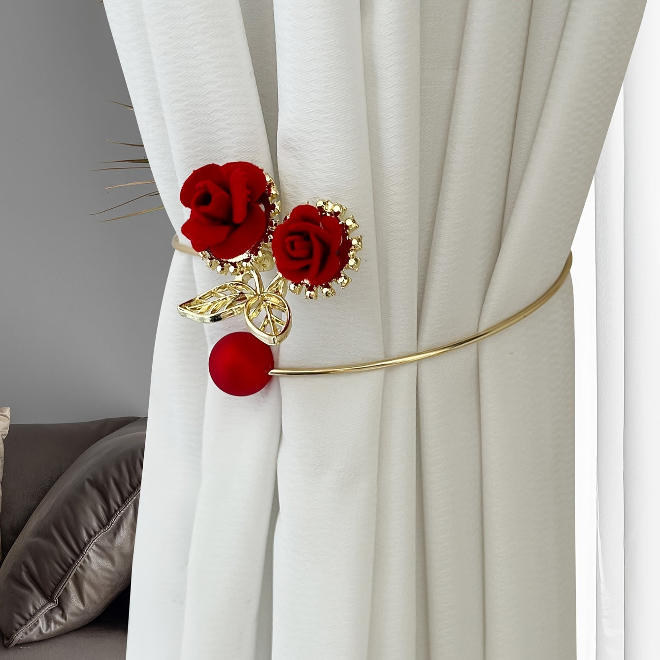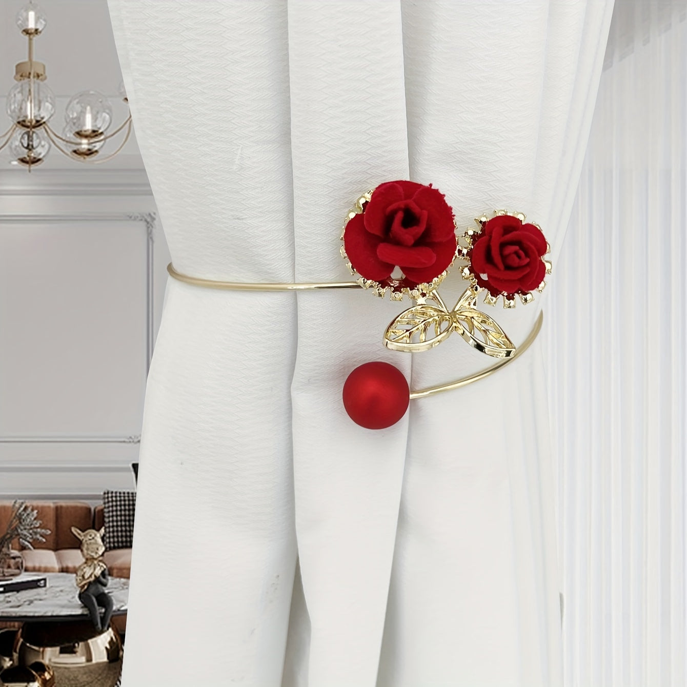 Glam uslubidagi gullar bilan ushlab turuvchi - 1 dona uchun - Qizil atirgul va marvarid dizayni bilan, qotishma metalldan tayyorlangan bog'ich - Teshik ochishga hojat yo'q, parda aksessuarini ta'kidlaydigan deraza bezatish uchun ideal.