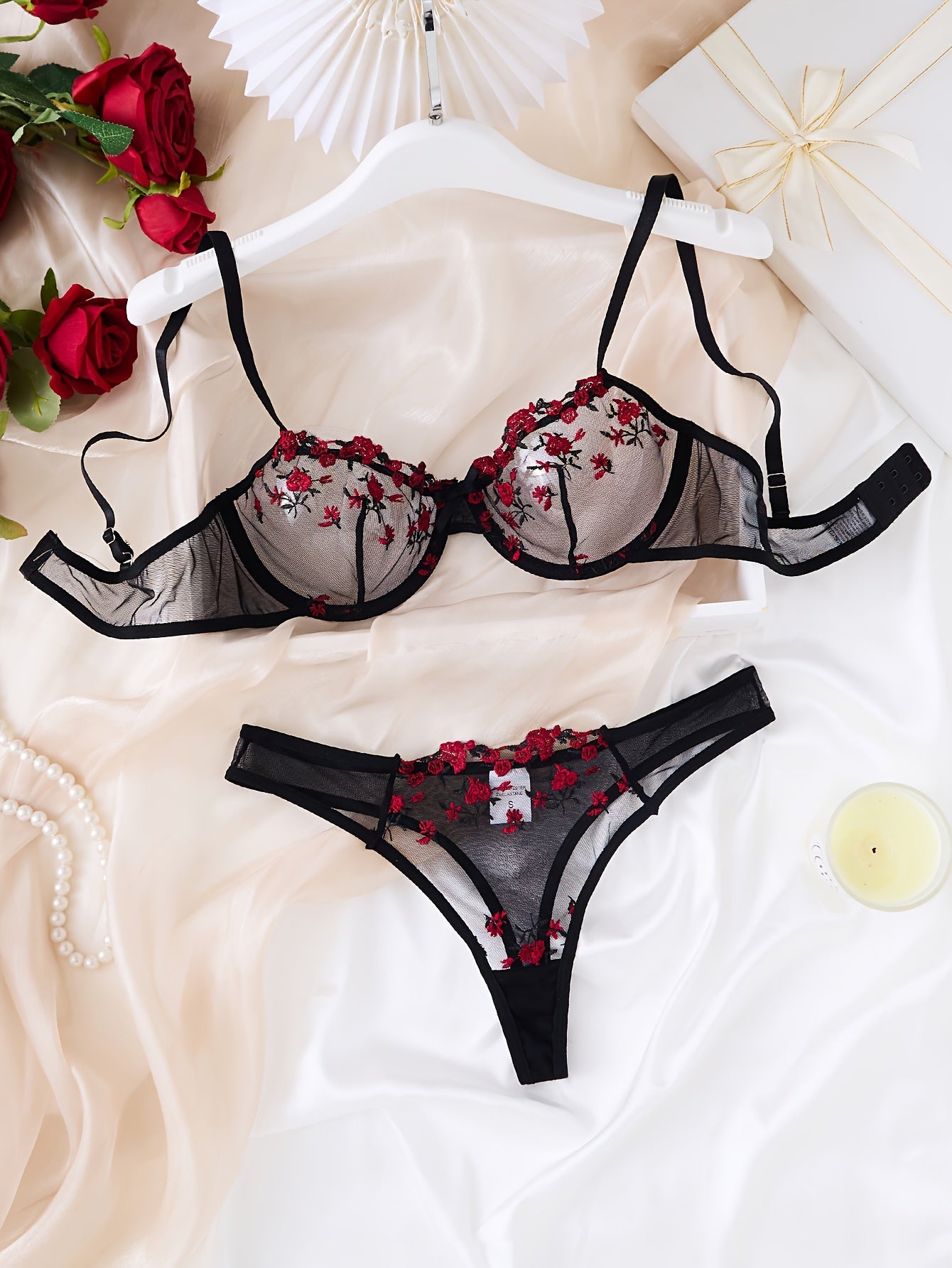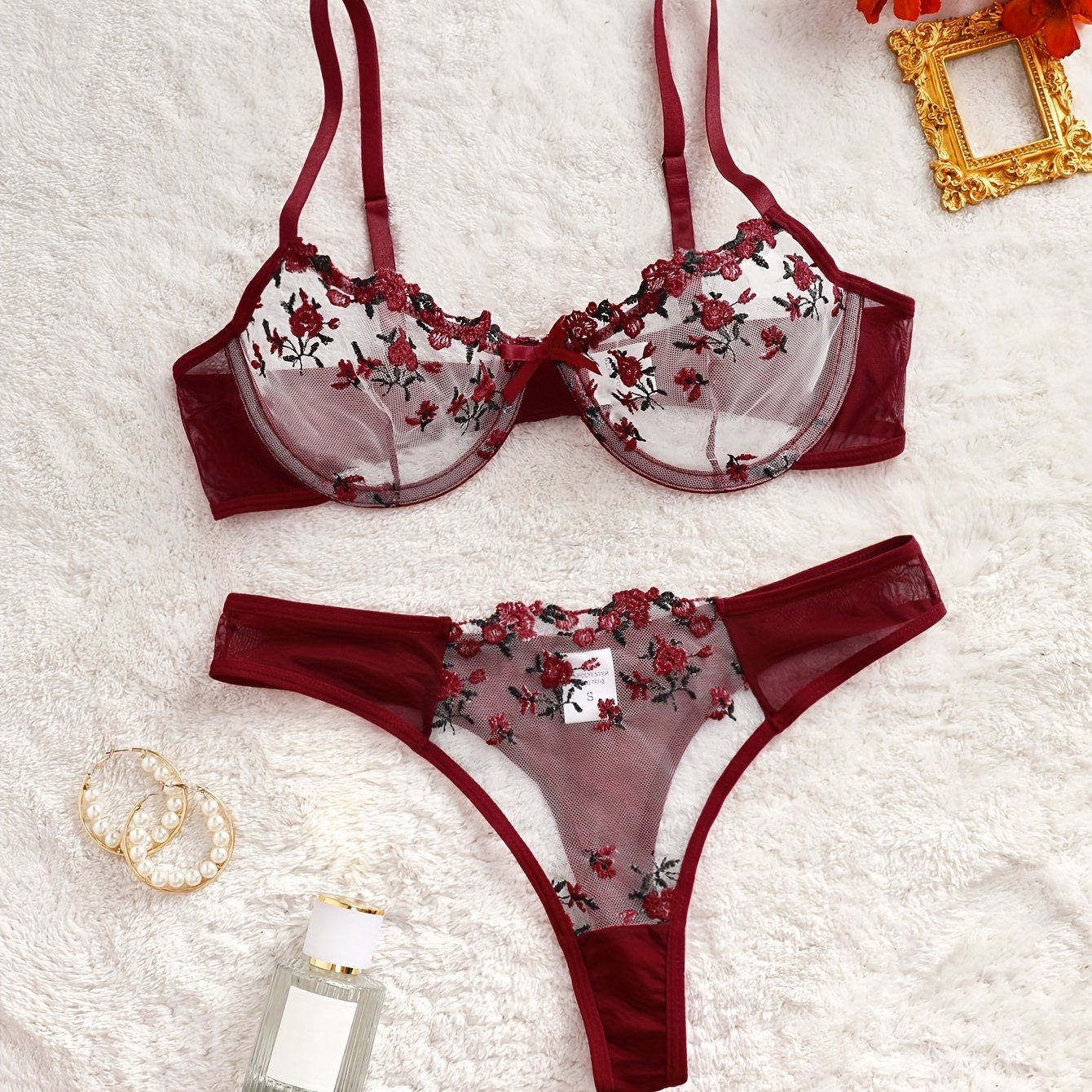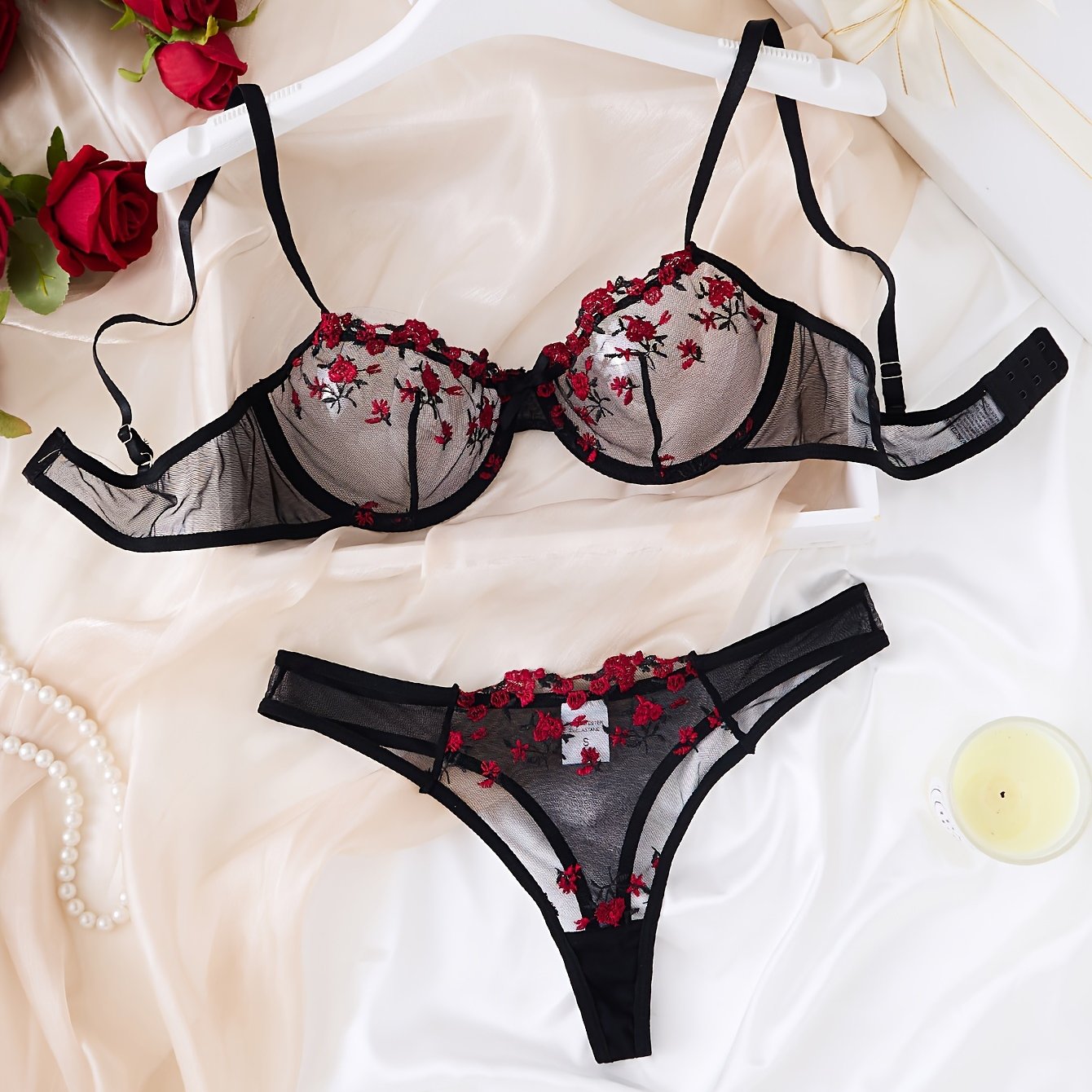 Gul naqshli to'qima kamzul va thong to'plami, Ayollar uchun jozibali ichki kiyim