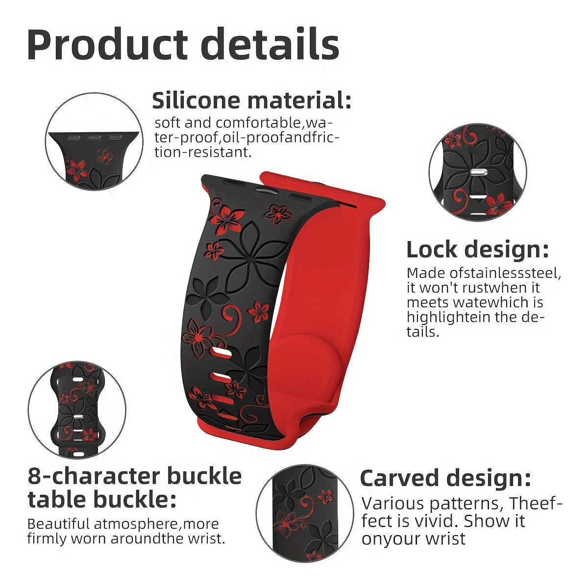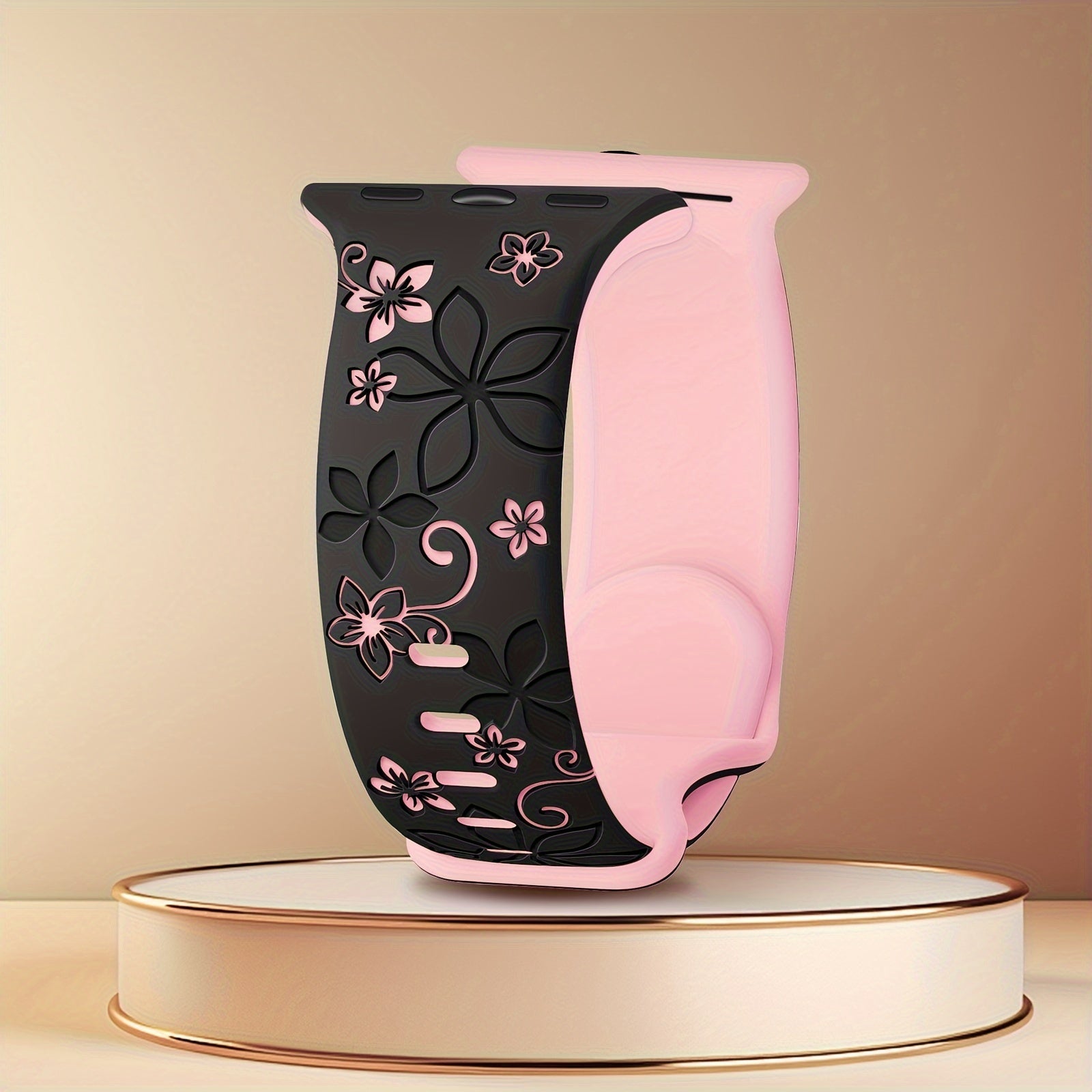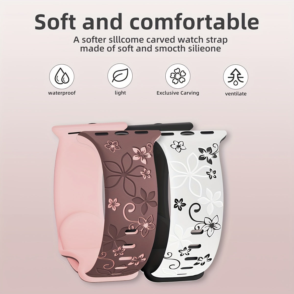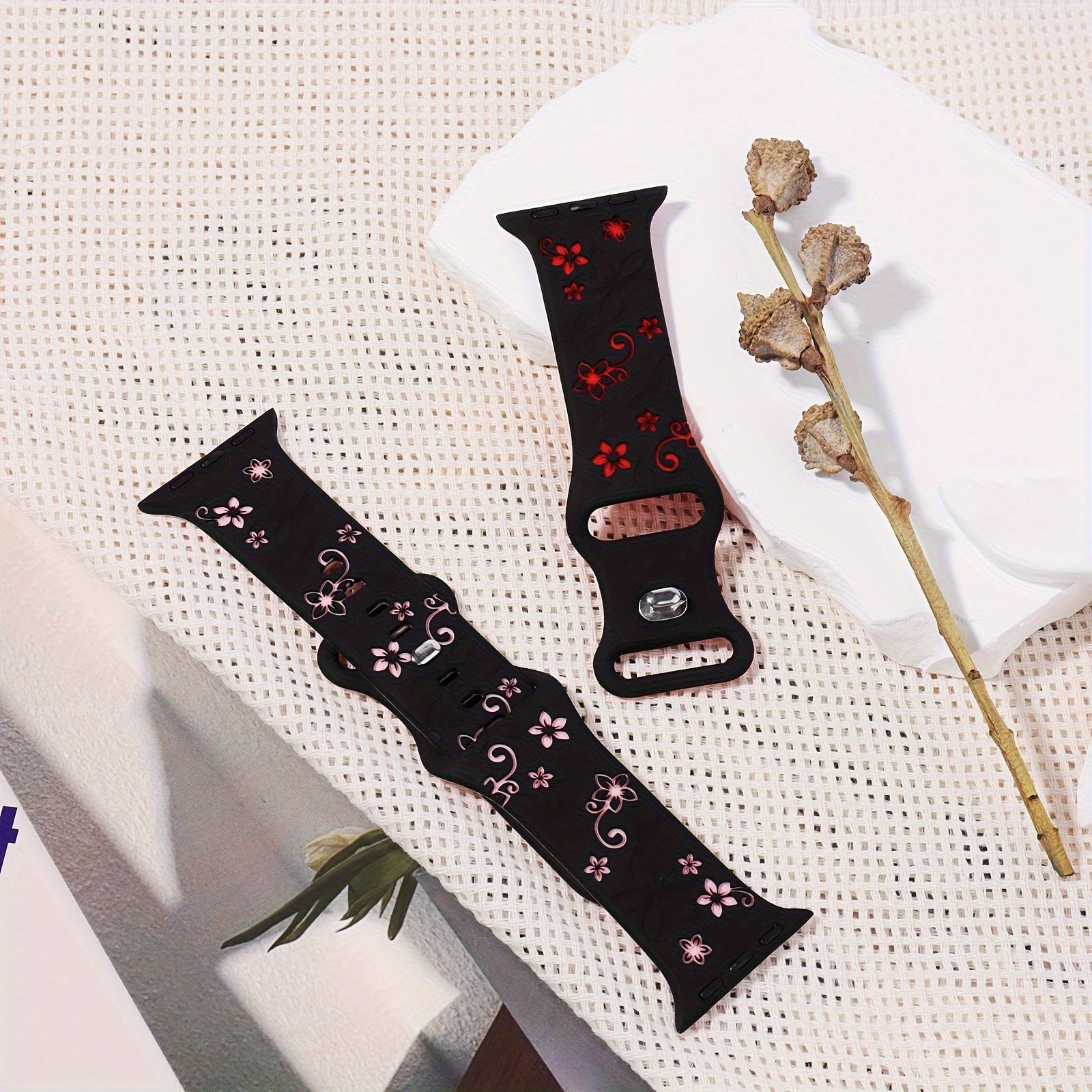 Ayollar uchun turli o'lchamlarda iWatch uchun gullar bilan o'yilgan silikon sport tasma.