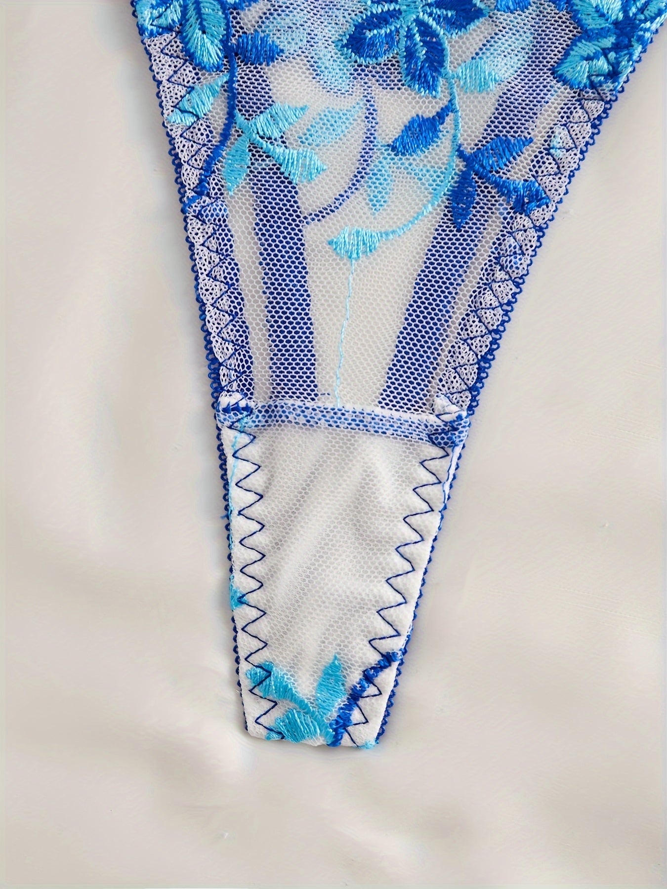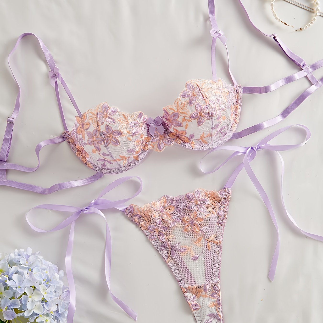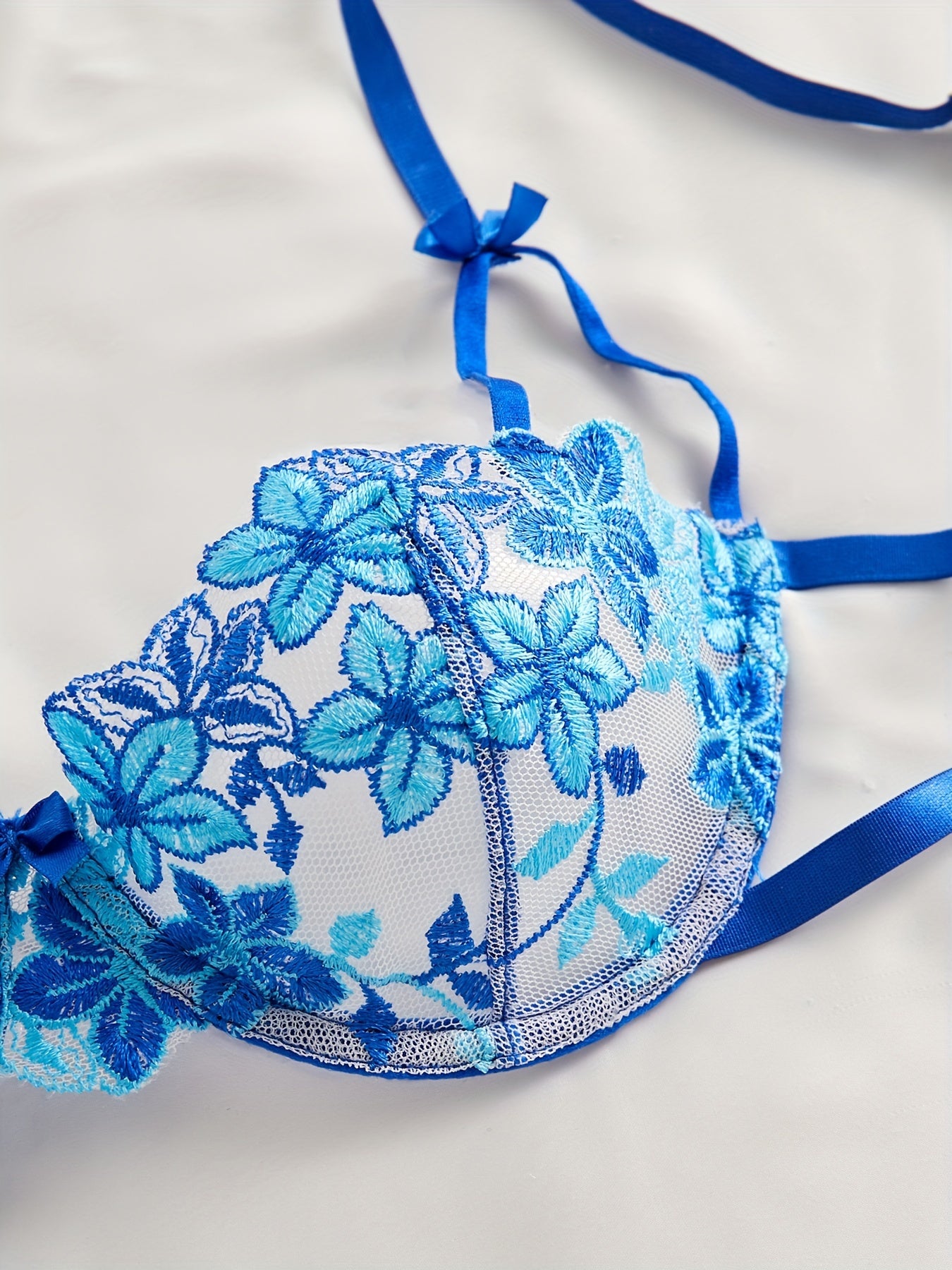 Gul naqshli dantel braletlar va ichki kiyim to'plami, ayollar uchun jozibali shaffof ichki kiyim.
