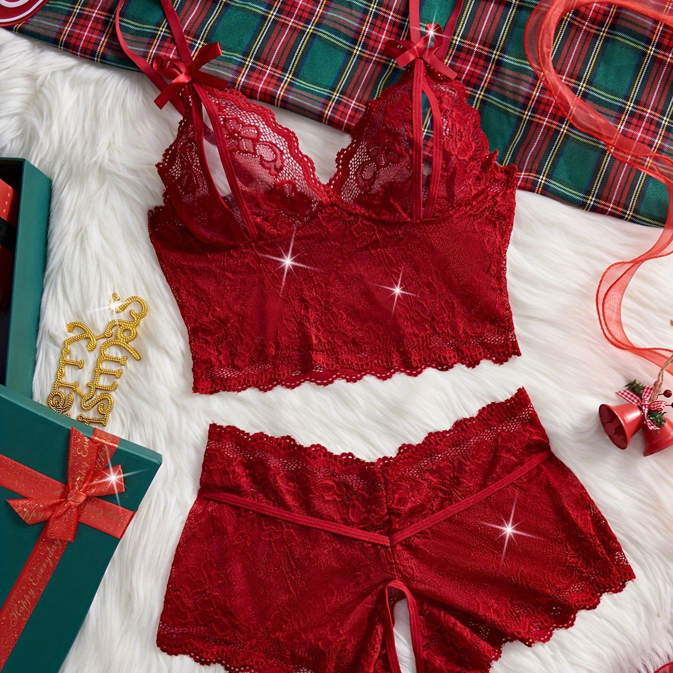 Gul naqshli dantel ichki kiyim to'plami, qoshni bog'ichli brassiyer va qorin qismisiz ichki kiyim bilan jozibali ko'rinish.