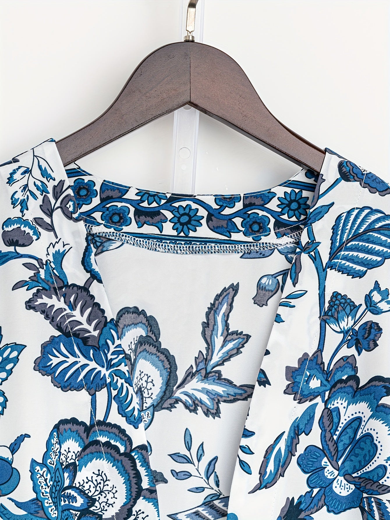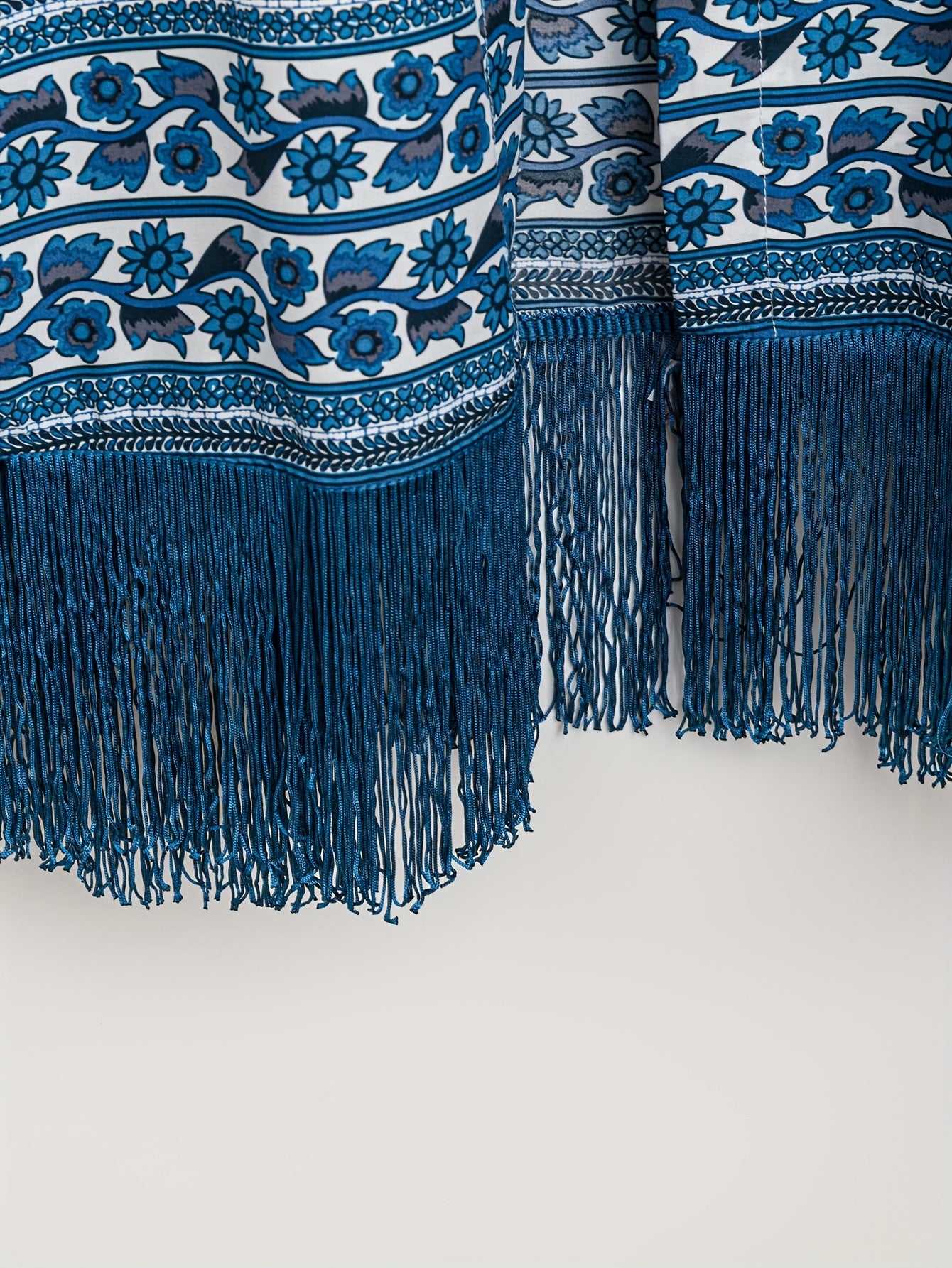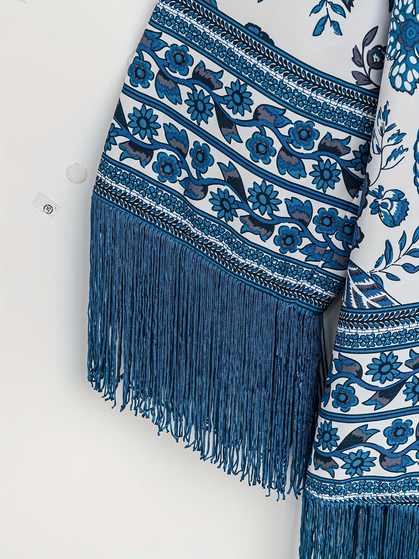 Gul naqshli franjali ikki qismli to'plam, ta'til uslubidagi uzun yengli bluzka va shimlar to'plami, kattalar uchun ayollar kiyimlari