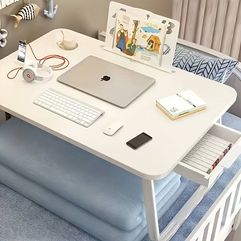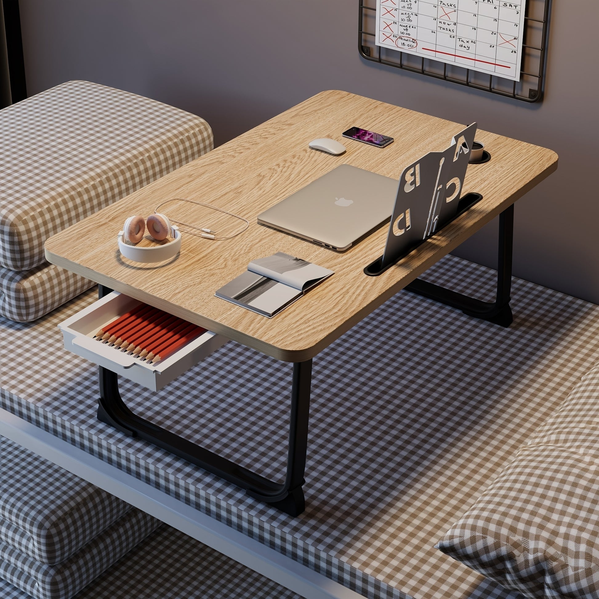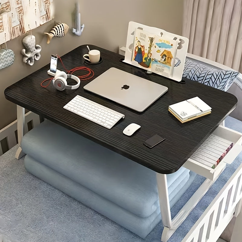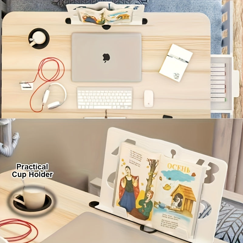 Yotqiziladigan yon stol, saqlash tortmasi, karta joylari, stakan ushlagichi va uy va ofis uchun qoplama noutbuk stoli.