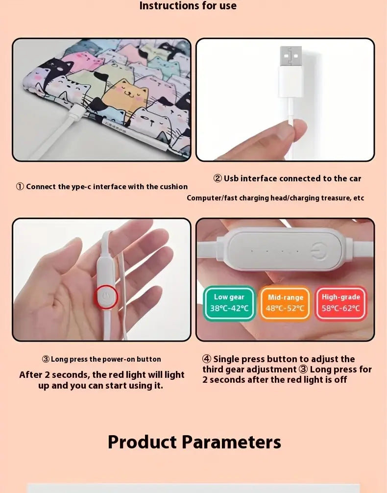 Bukiladigan Grafen isitish o'rindiq padjasi, kulrang Oxford, portativ sayohat ofis tashqarisi