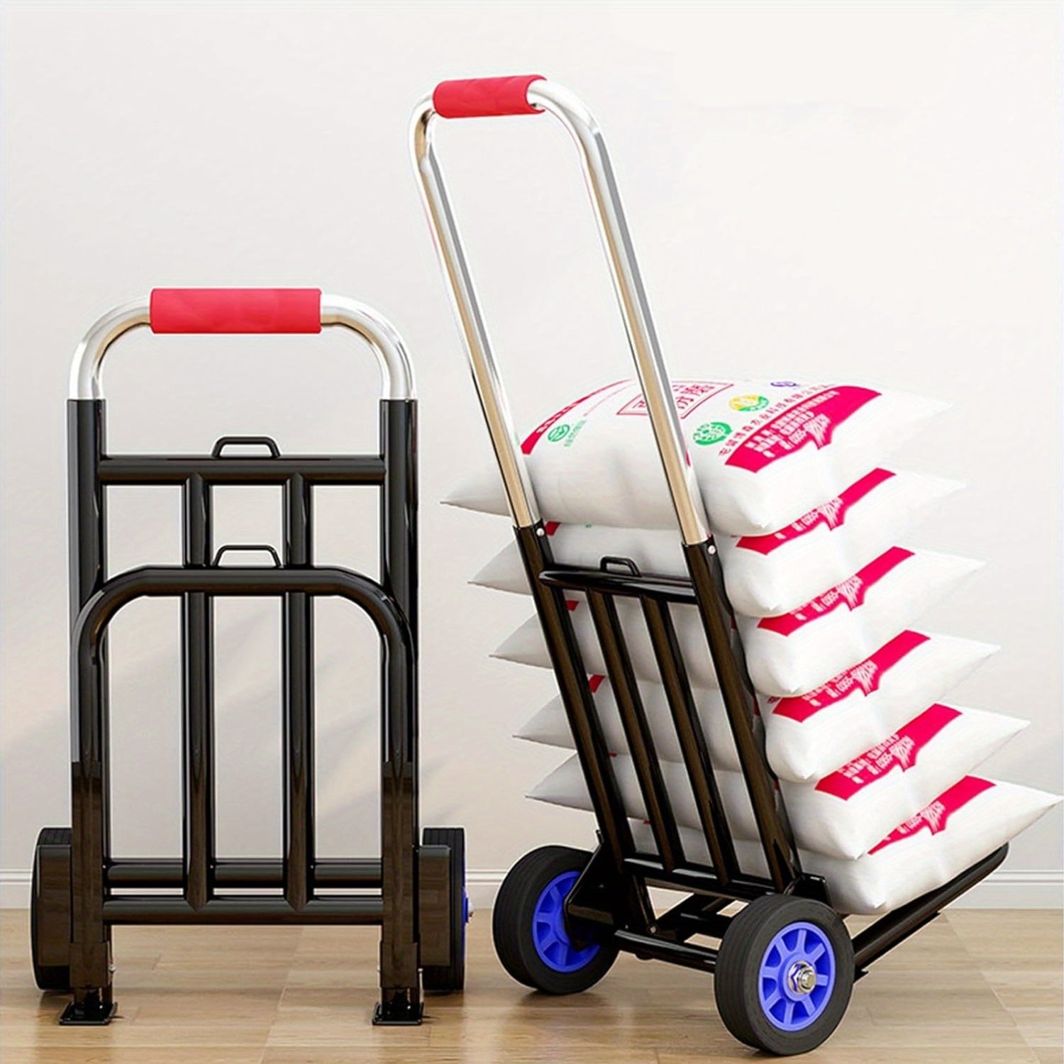 Qayriladigan temir ramka aravachasi, rezina g'ildiraklar bilan, 99.79 KG yuk ko'tarish qobiliyati, zinapoyalarda va barqaror yuzalarda ideal. Xavfsiz yuklash uchun 3 ta ipni o'z ichiga oladi. Yuk tashish uchun ajoyib.
