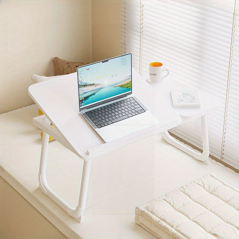 Moslashuvchan bukadigan noutbuk stoli oq va qora, 5 balandlik sozlamalari bilan, uy, yotoqxona, ofis uchun