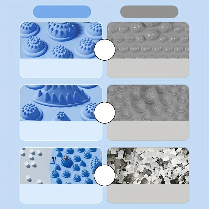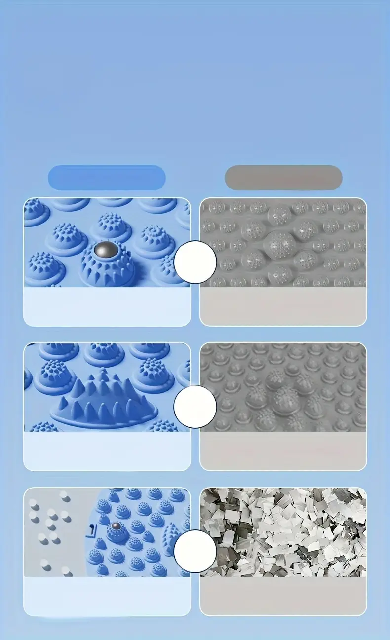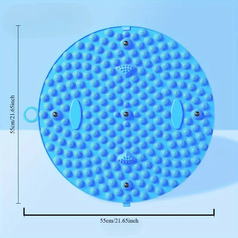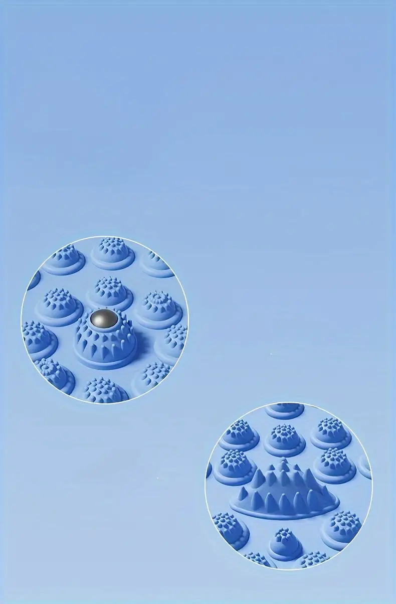Tanaffusni bartaraf etish, dam olish va sog'liqni yaxshilash uchun akupressura nuqtalari va sirpanmas dizaynga ega oyoq massaji matosi. Uyda mashq qilish va tayyorgarlik uchun mustahkam plastikdan tayyorlangan. Hidi yo'q.