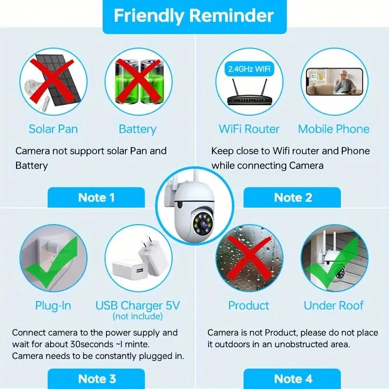 4 ta to'plam 1080P HD WiFi ichki xavfsizlik kameralar, kechqurun ko'rish, harakatni aniqlash va 360° aylantirish bilan
