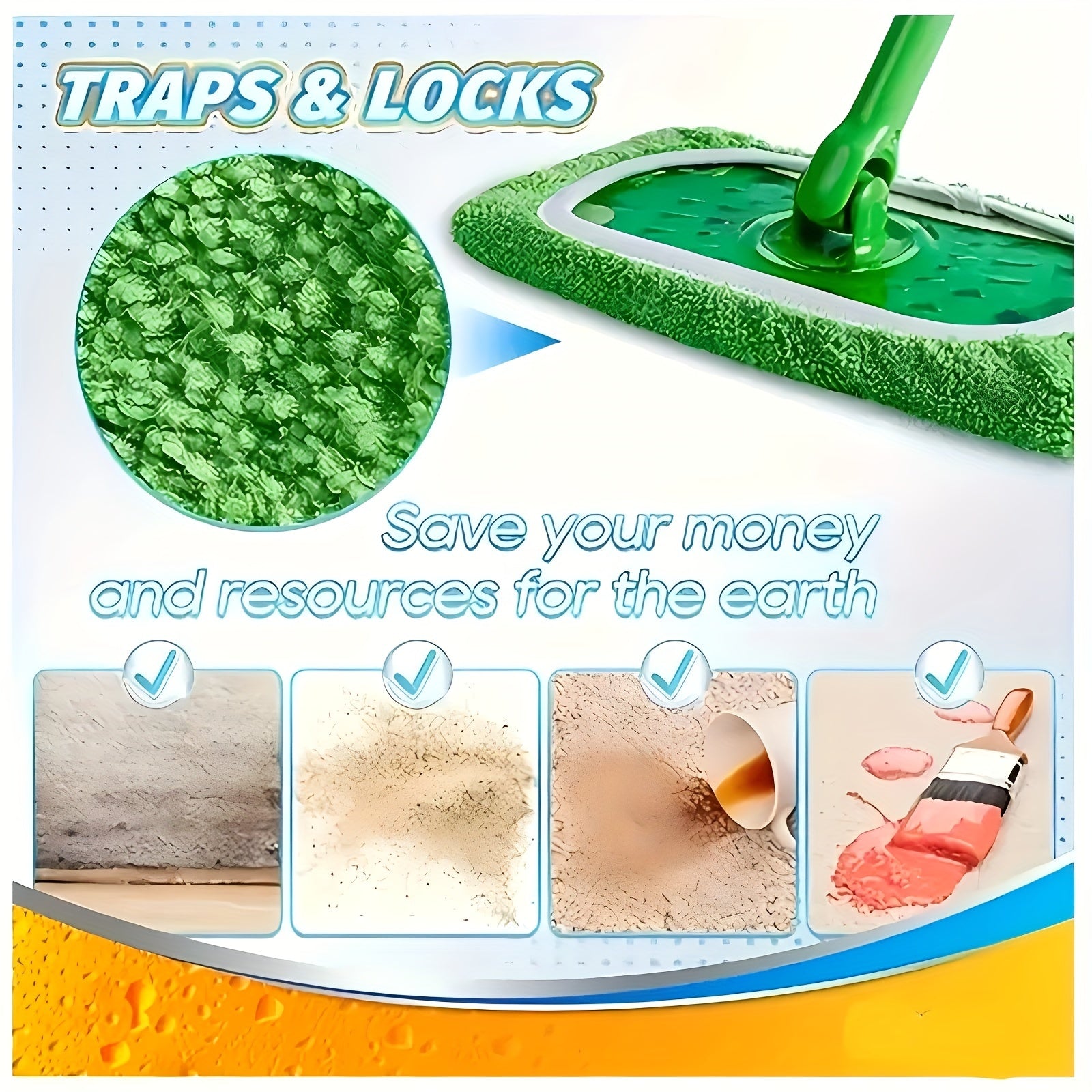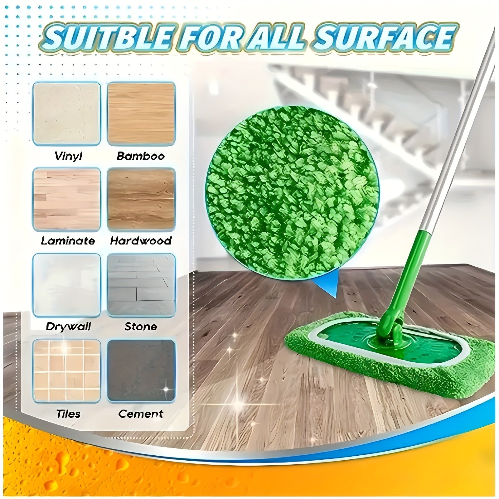 To'rt dona yuqori singdiruvchi mikroto'qima mopa yostiqlari qayta ishlatiladigan, yuviladigan va uzoq muddatli. Ushbu tekis pol matolari tozalashni quruq va nam foydalanish bilan osonlashtiradi.