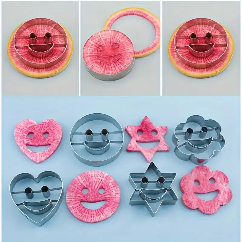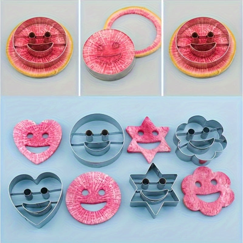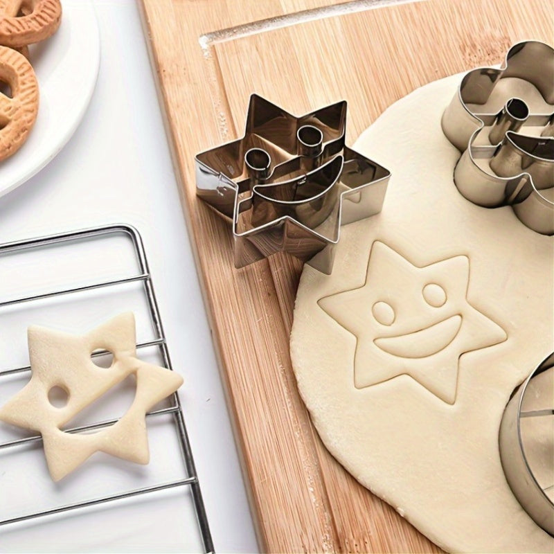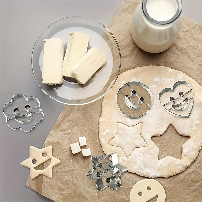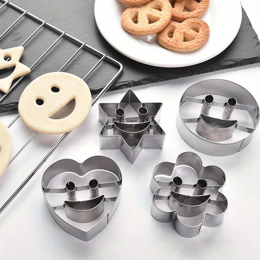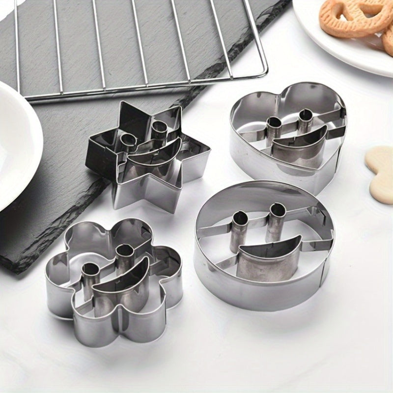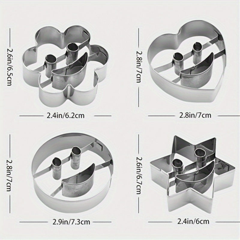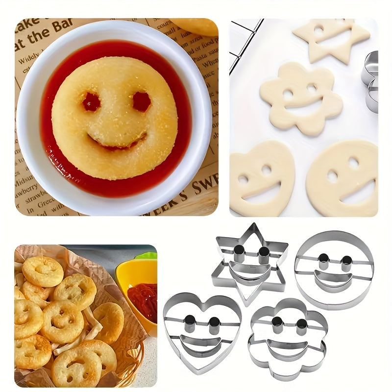 To'rt dona zanglamaydigan po'latdan yasalgan tabassum yuzli pechenye qoliplari.