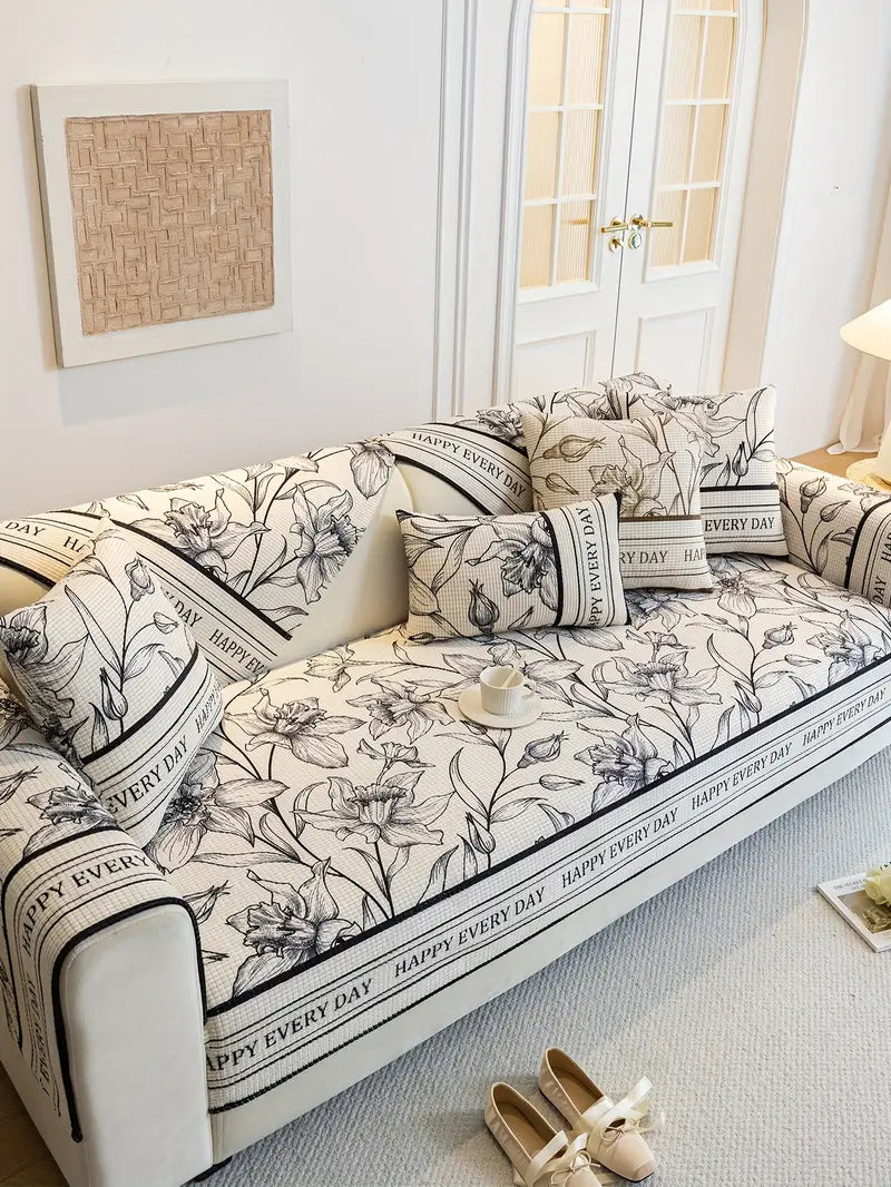 Fransuz vintage divan qoplamasi, hayvonlarga do'st, mashinada yuvish mumkin, barcha mavsumlar uchun mos qisqa plush jakard dizayni.