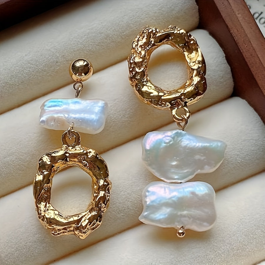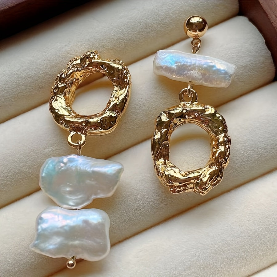 Boho uslubidagi yangi suv barokko marvaridli quloq uzuklari, tabiiy oq Biwa marvaridi bilan, dekabr tug'ilgan toshi uchun mukammal, bohem uslubidagi bayram modasi, qoplamasiz, har kuni kiyish uchun yoki Sevishganlar kuni sovg'asi sifatida ajoyib.