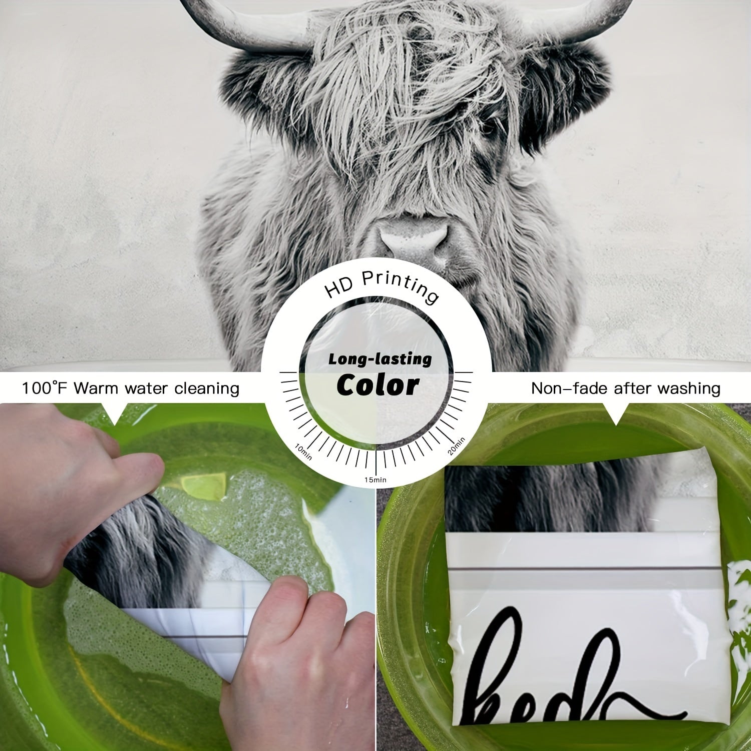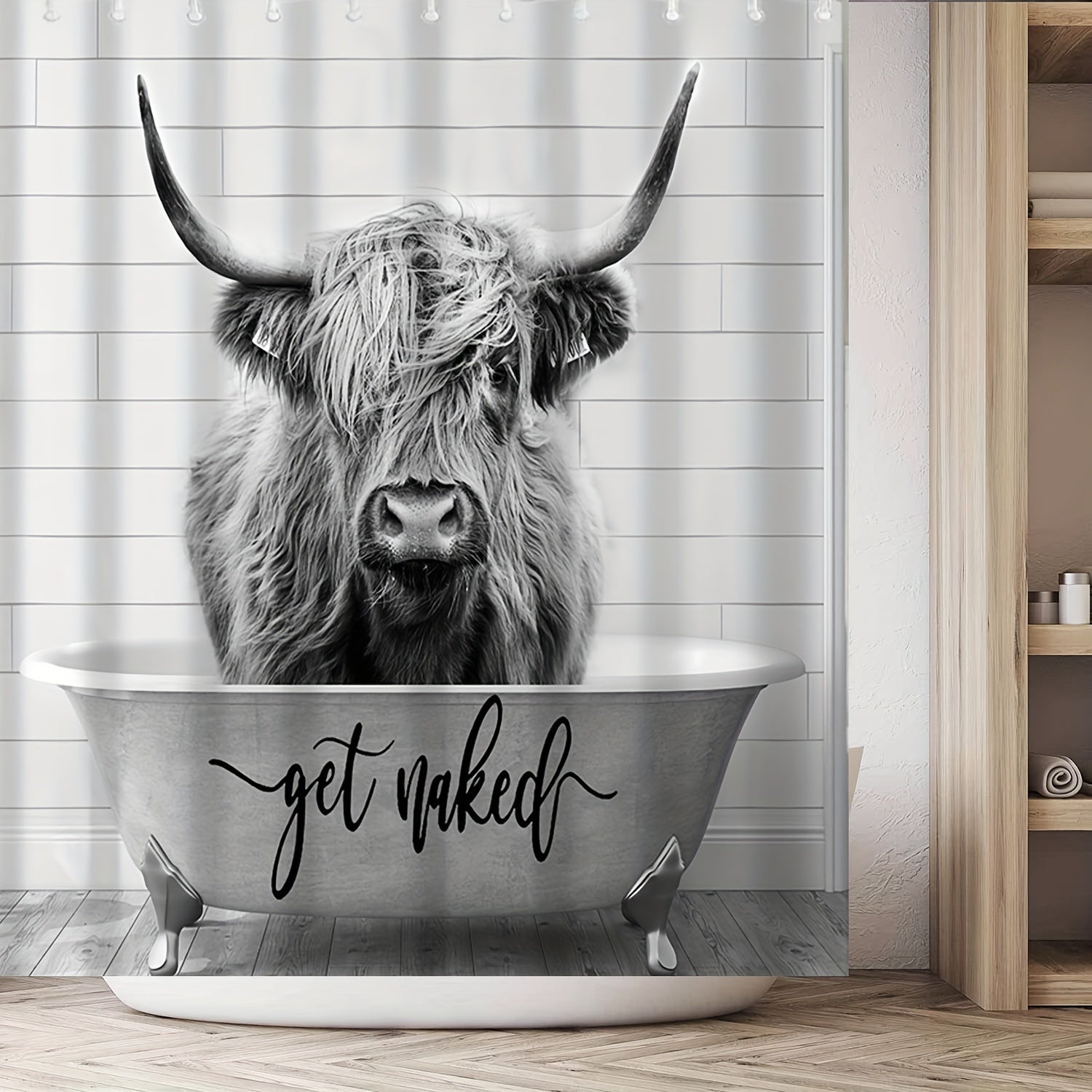 Qishloq uslubidagi hammom dekoratsiyasi uchun kulgili G'arbiy Yuqori Sigir dush pardasi to'plami, 182.88 x 182.88 sm o'lchamdagi polyester matodan tayyorlangan. Estetik xona va uy dekoratsiyasi uchun ideal.