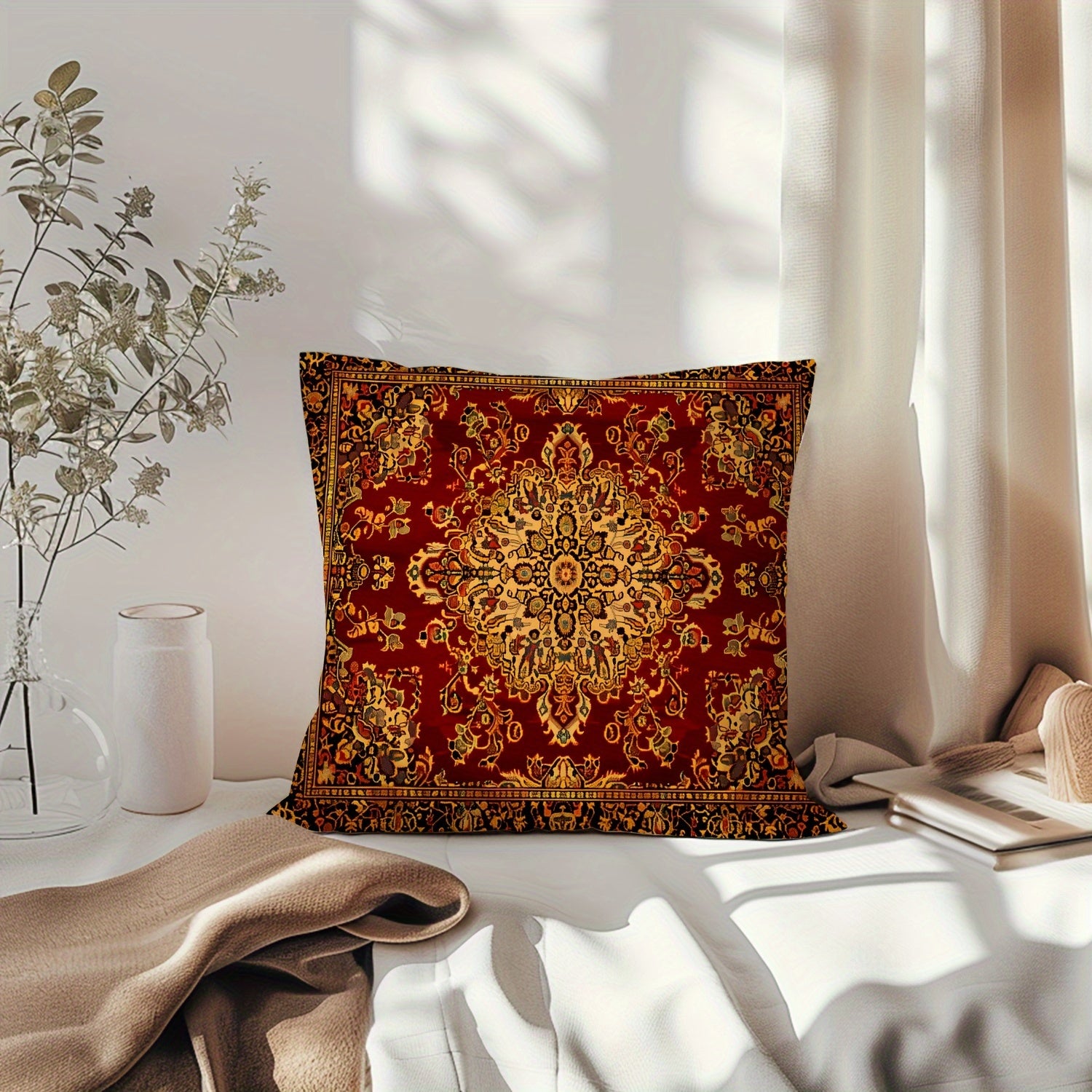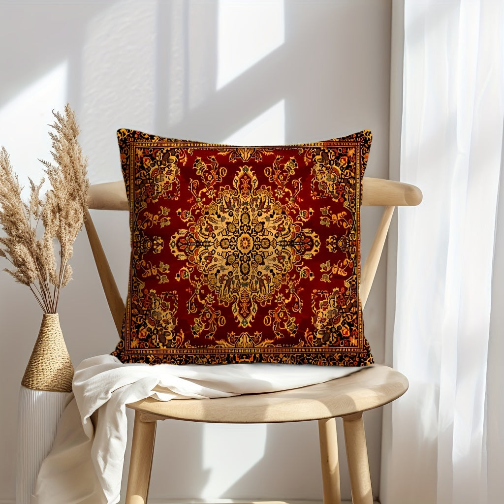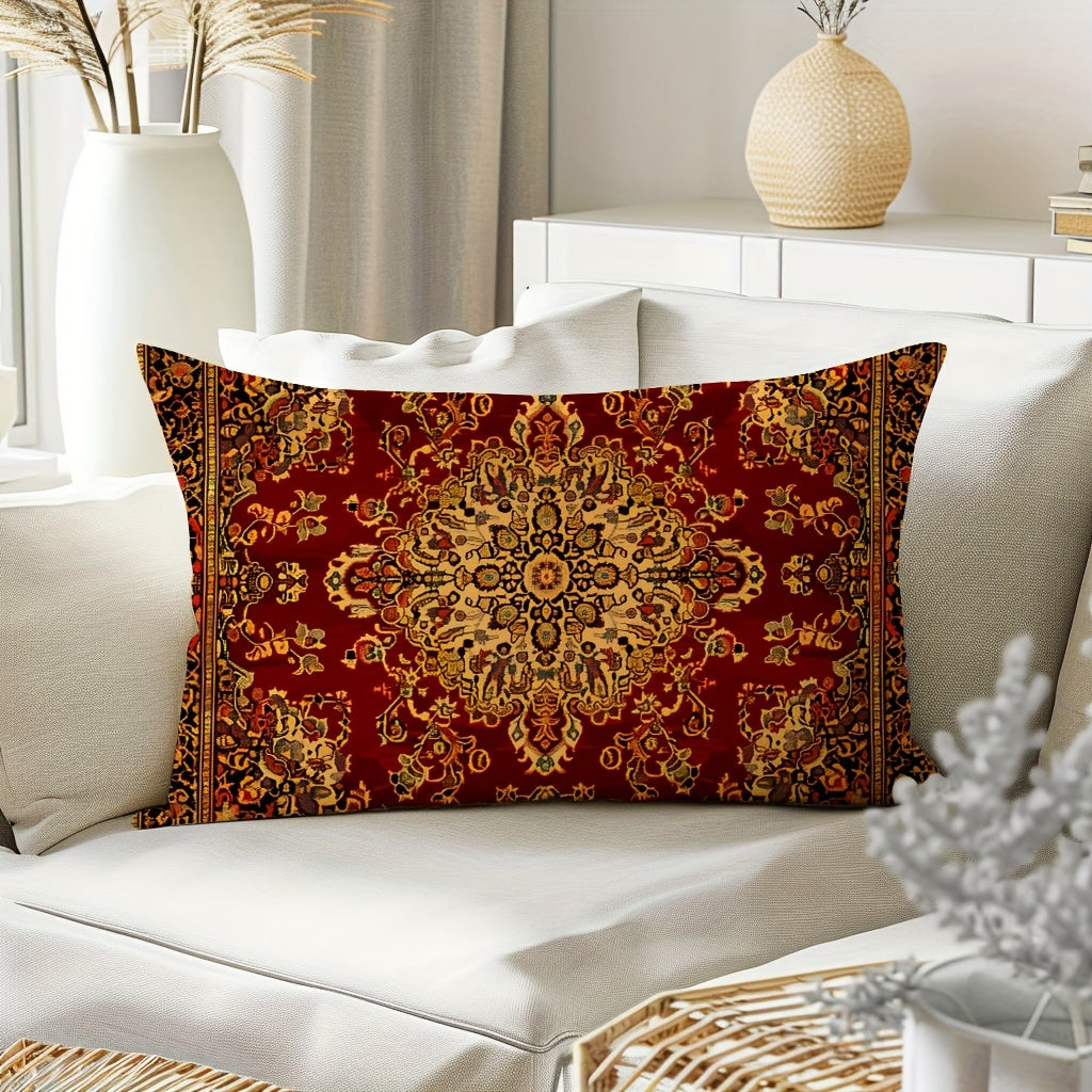 Geometrik qizil qabilaviy bosma yostiq qopqog'i ikki o'lchamda, yashash xonasi yoki yotoqxona uchun uy bezaklari uchun mukammal. Yostiq ichki qismi kiritilmagan.