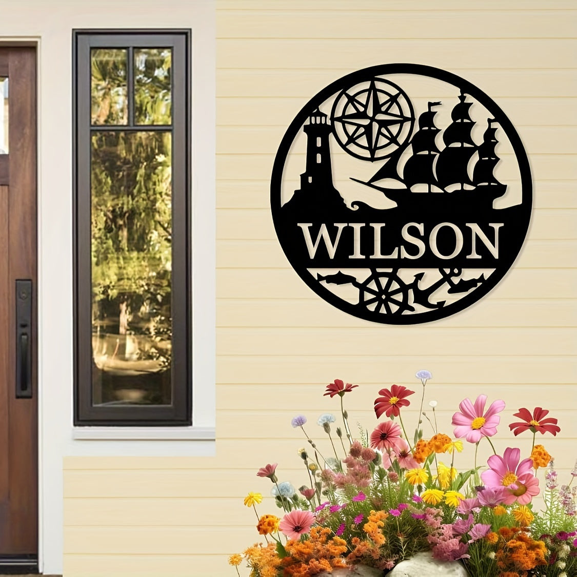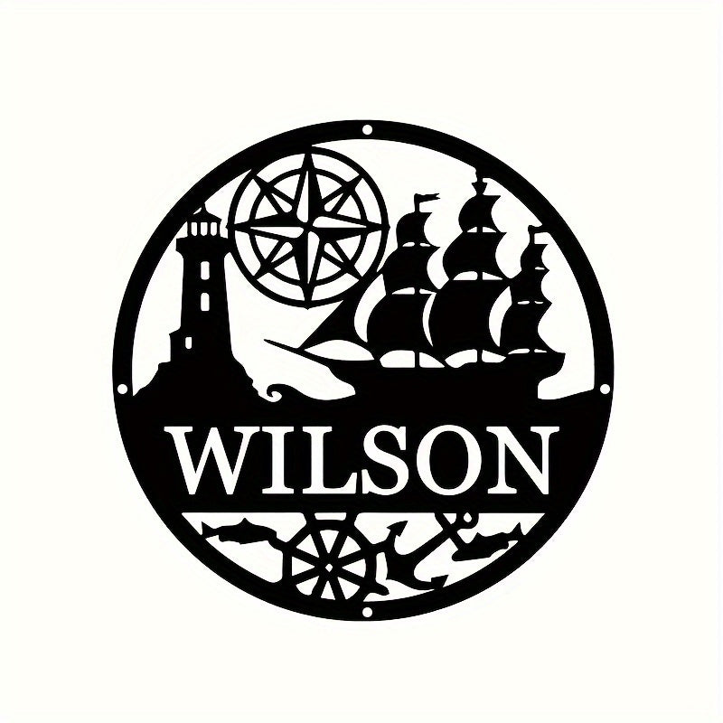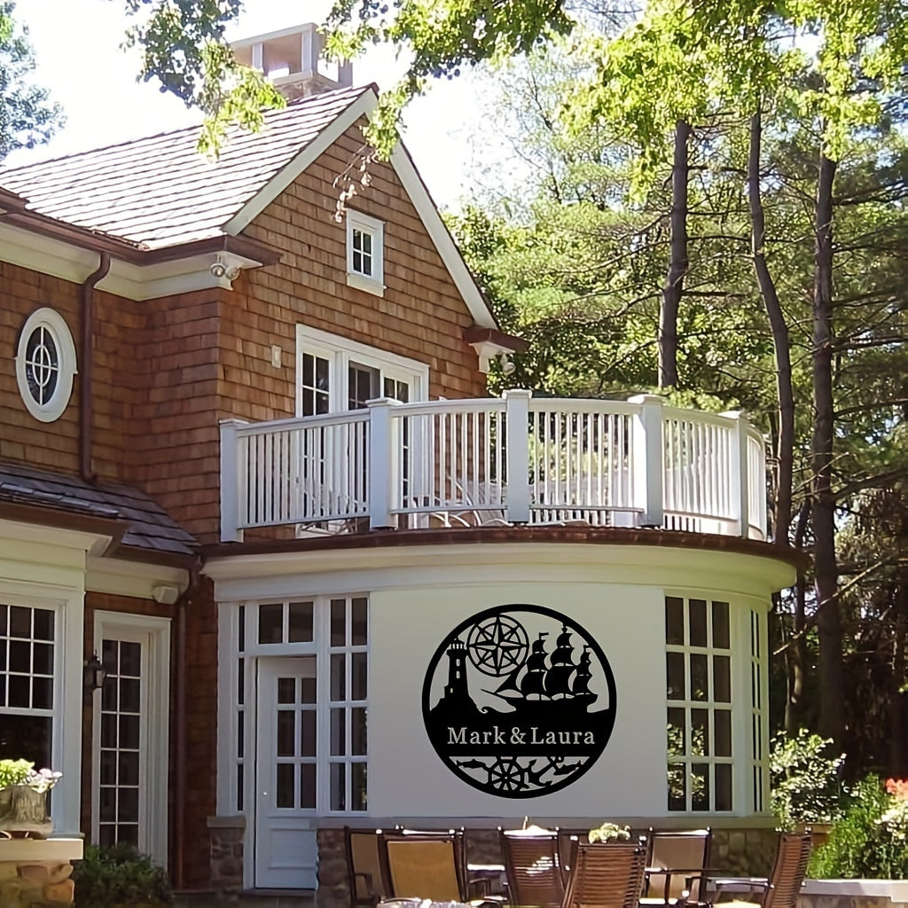 Geometrik Yelkenli Qayiq Metall Devor San'ati - Shaxsiylashtirilgan Dengiz Chirog'i Oila Ismi Eski Qopqoqi, Temir Uy Dekor Belgi, Yashash Xonasi, Tashqi, Halloween, Plyaj Mavzusidagi Xonalar uchun - 14 yosh va undan katta yoshdagilar uchun mukammal