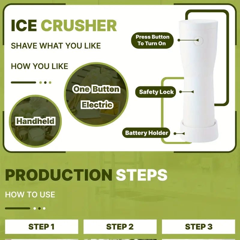 Kabelsiz elektr shisha maydalagich, zanglamaydigan po'lat burchaklar, portativ muz maydalash, xavfsiz va sog'lom