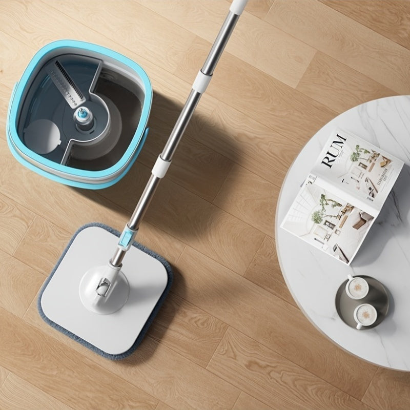 Yuvilishi mumkin va qayta ishlatiladigan pad bilan qo'ldan ozod spin mop oling. U zanglamaydigan po'latdan yasalgan tozalash va iflosliklarni ajratish qutisi bilan va har qanday xonada samarali polni tozalash uchun oson siqish tizimi bilan ta'minlangan.