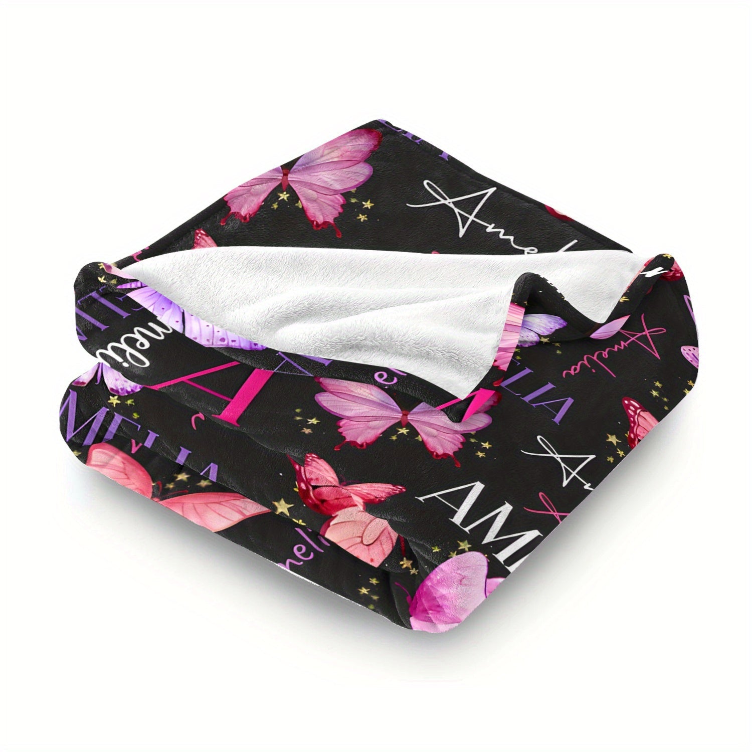 Shaxsiylashtirilgan Flanelso'ralgan plash blanket, Maxsus ism Amelia Butterfly, yumshoq to'qilgan polyester, vintage uslubdagi divan va TV uchun barcha mavsumlar uchun mo'ljallangan.