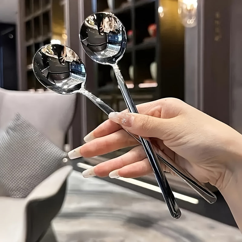 2 ta zanglamaydigan po'latdan yasalgan uzoq tutqichli xizmat qilish qoshlari to'plami, bardoshli, oson tozalanadi