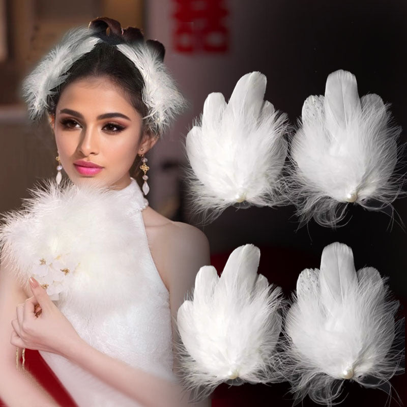 Oq Qush Qoqi Soch Qoplamalari 2 dona, kelinlik va to'y uchun ayollar uchun barrettlar