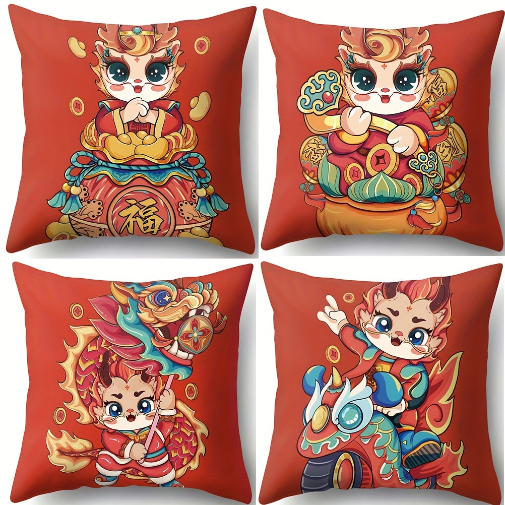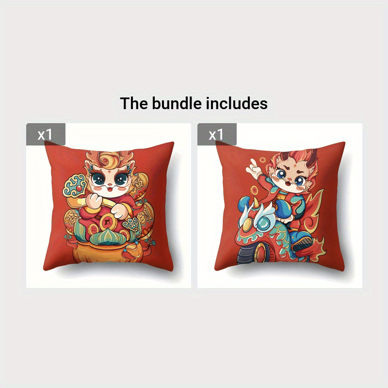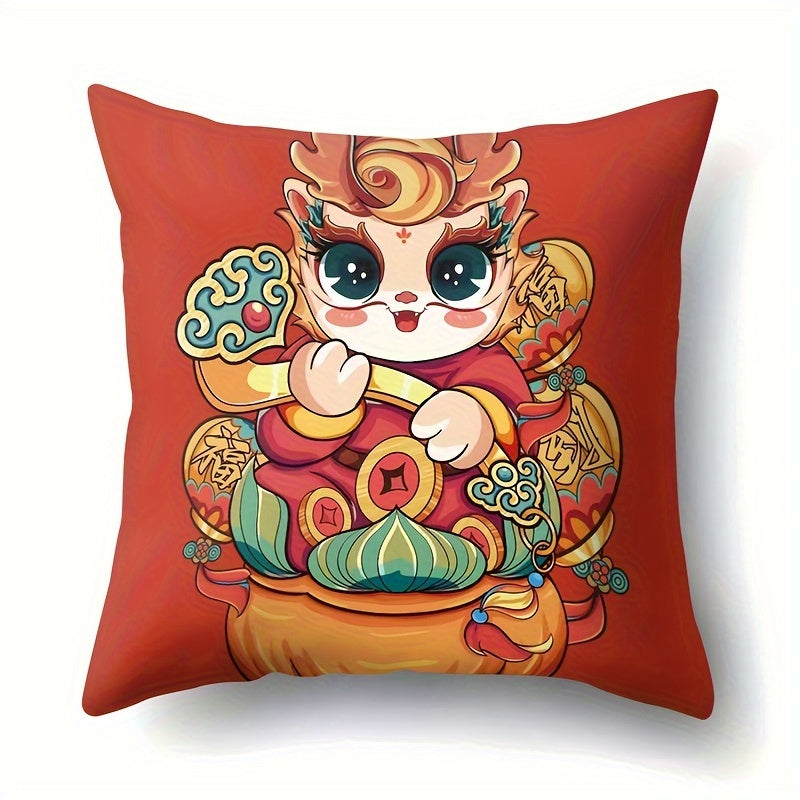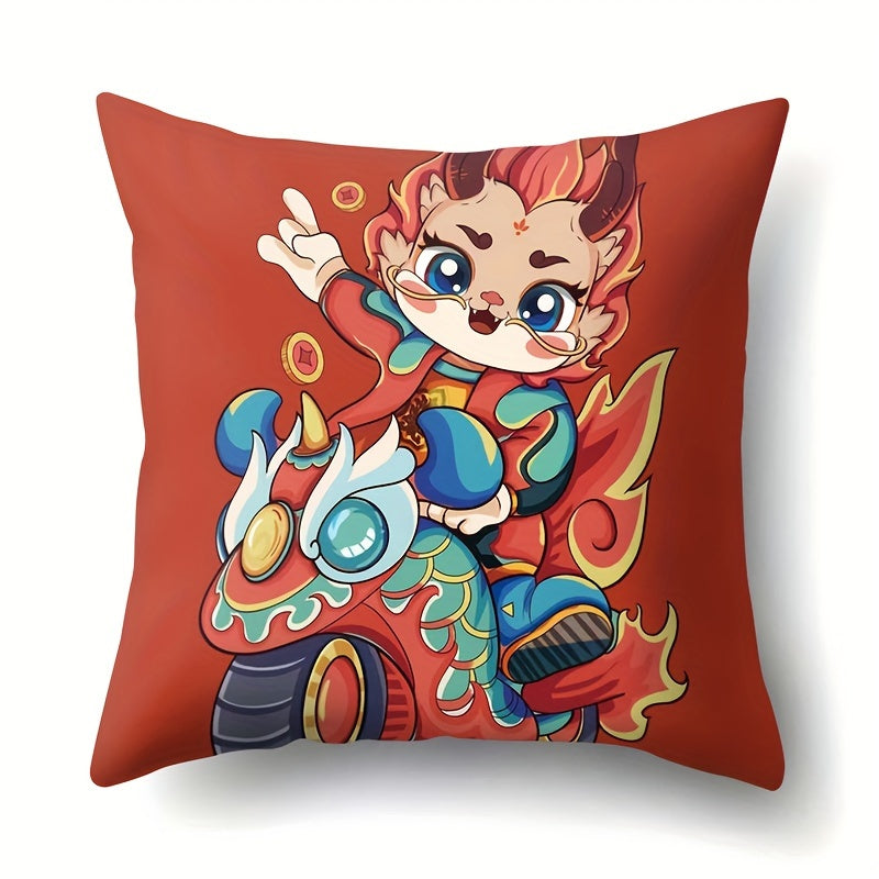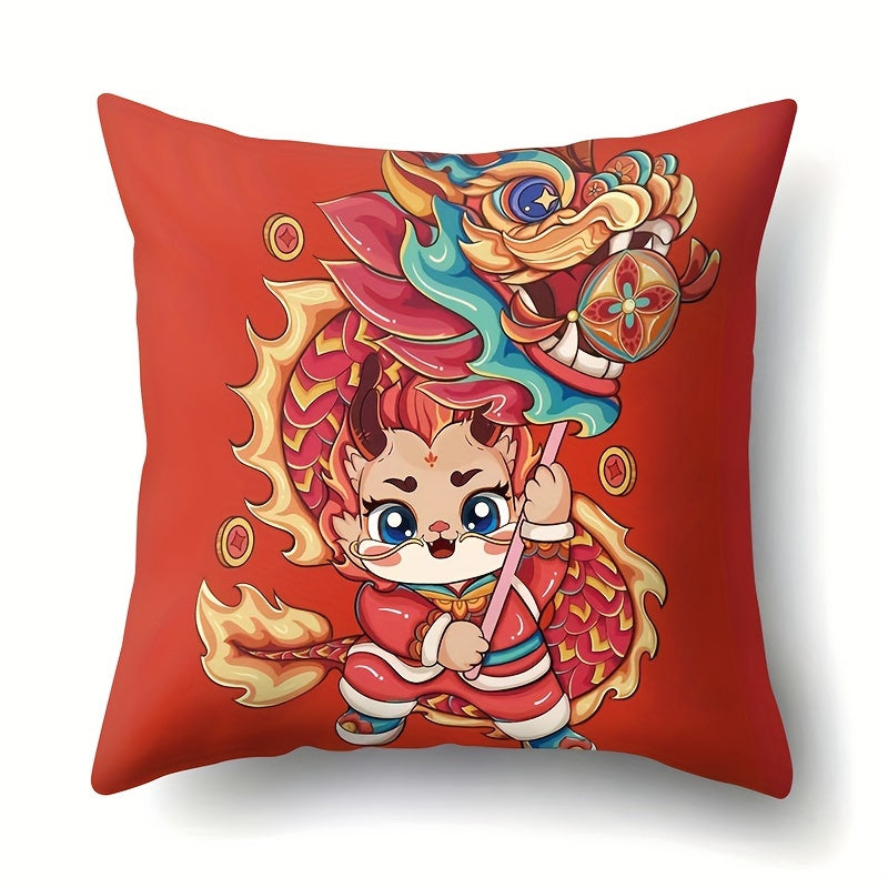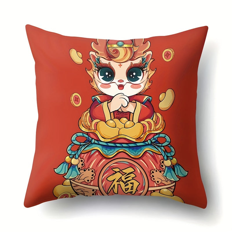 Xitoy Yangi Yili yostiq qoplami Qizil Ajdarha dog'ga chidamli polyester 44 sm kvadrat