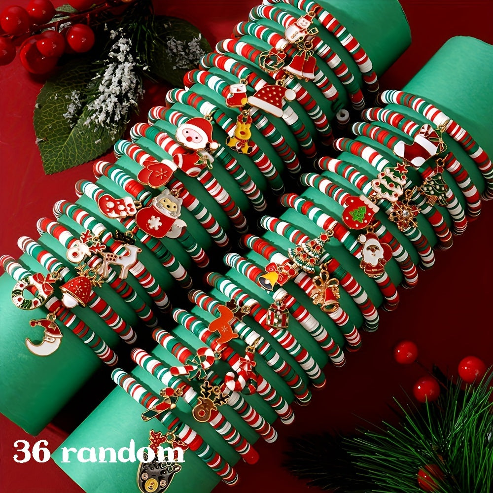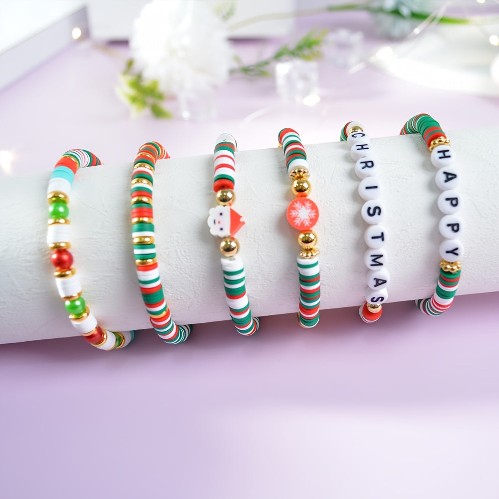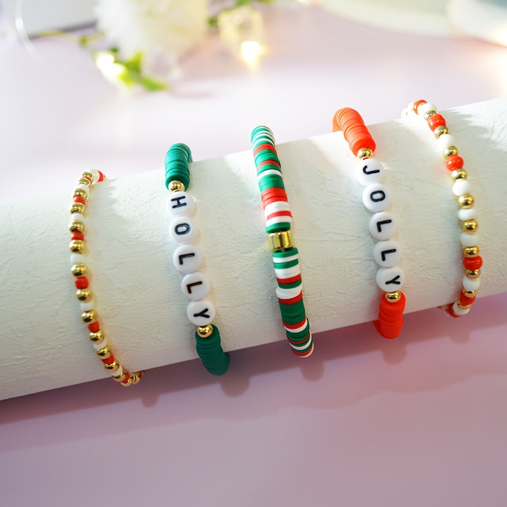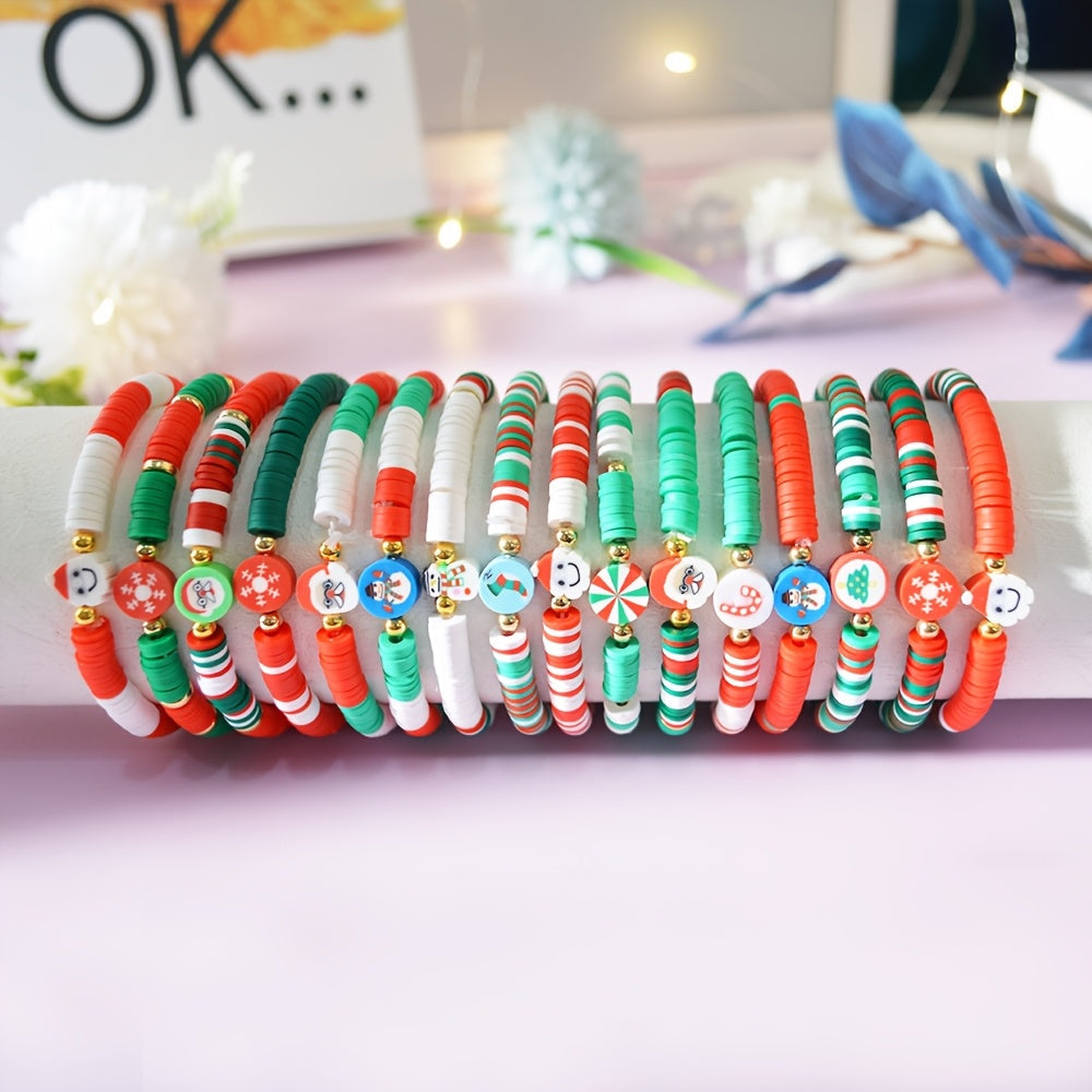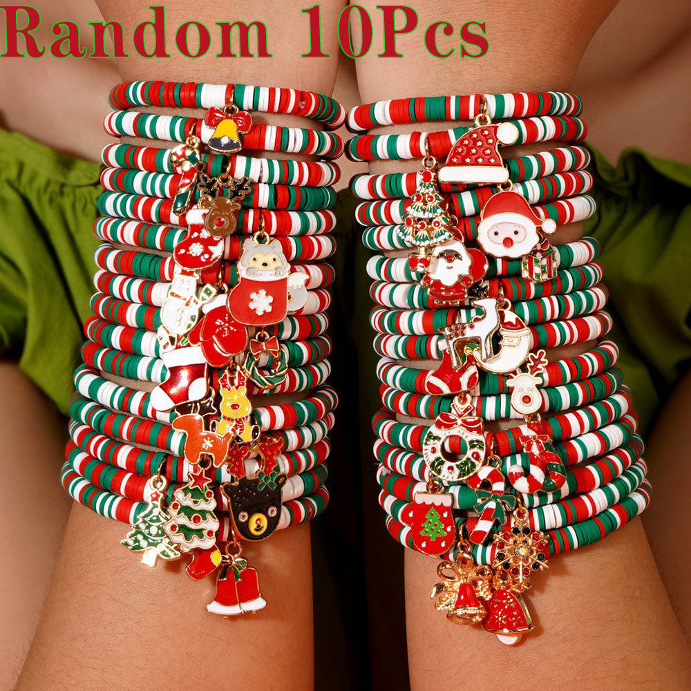Bayramlik Rojdestvo Charm Bilaguzuklar to'plami, 10 ta sozlanadigan Polimer Silliq Bead Bilaguzuklar bilan