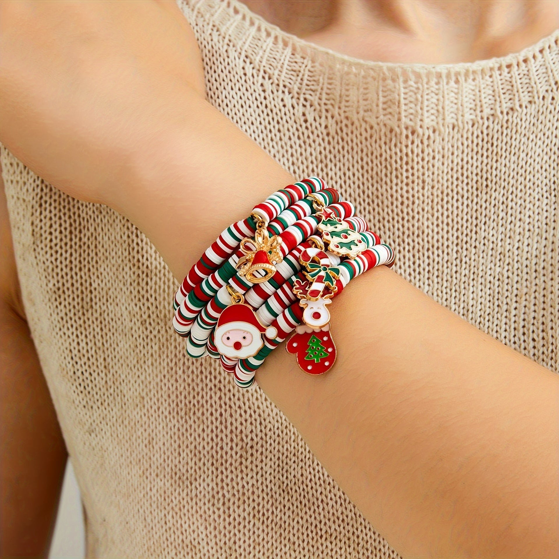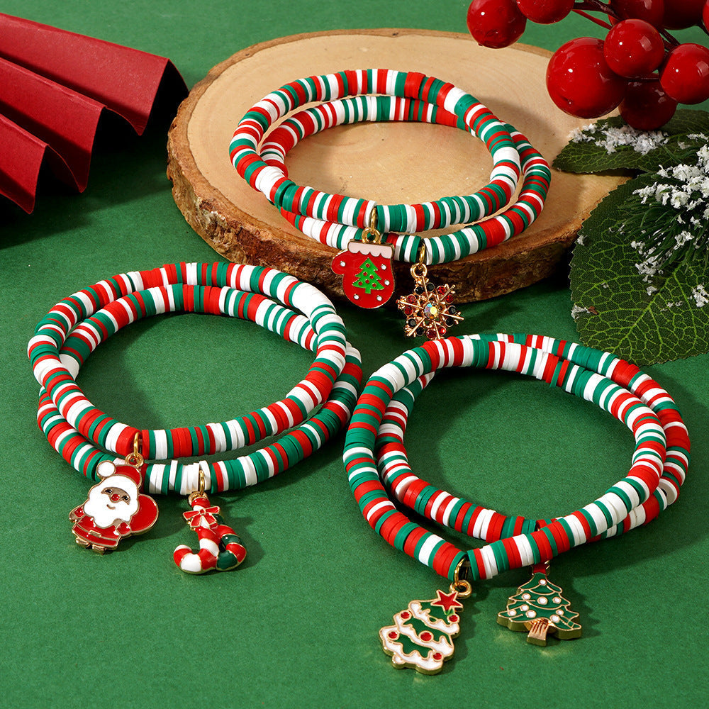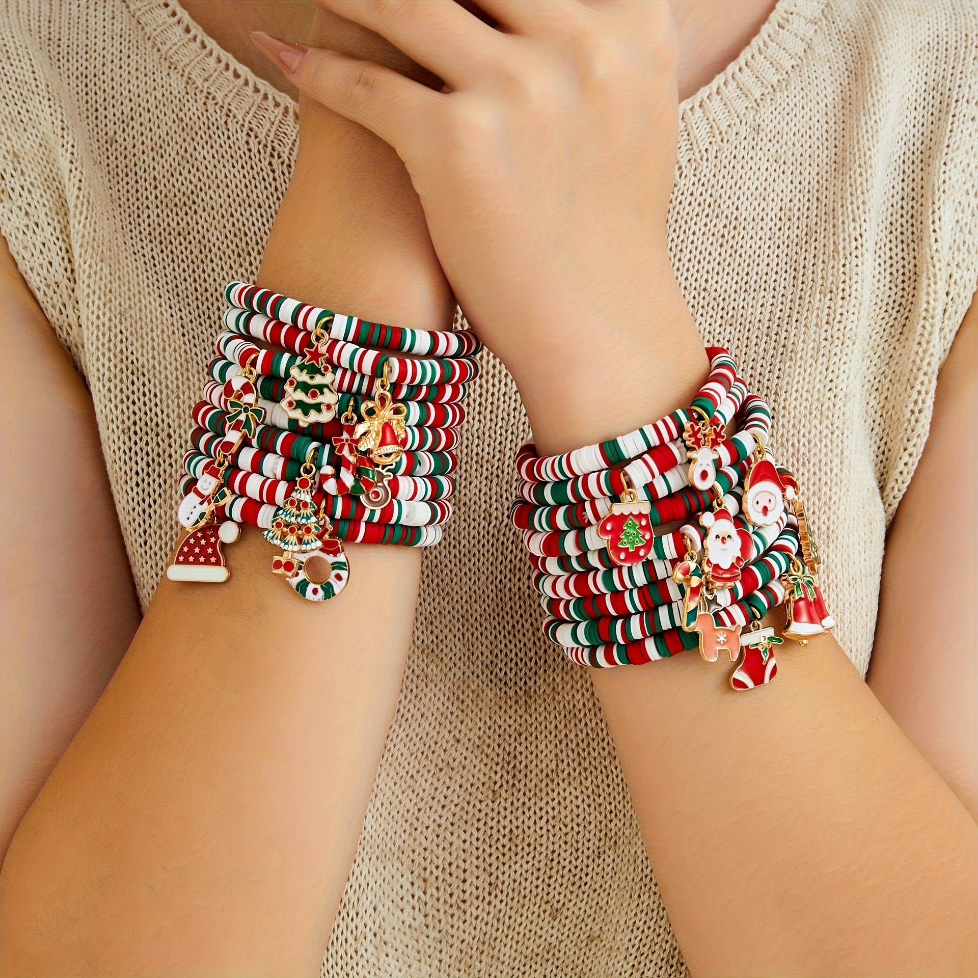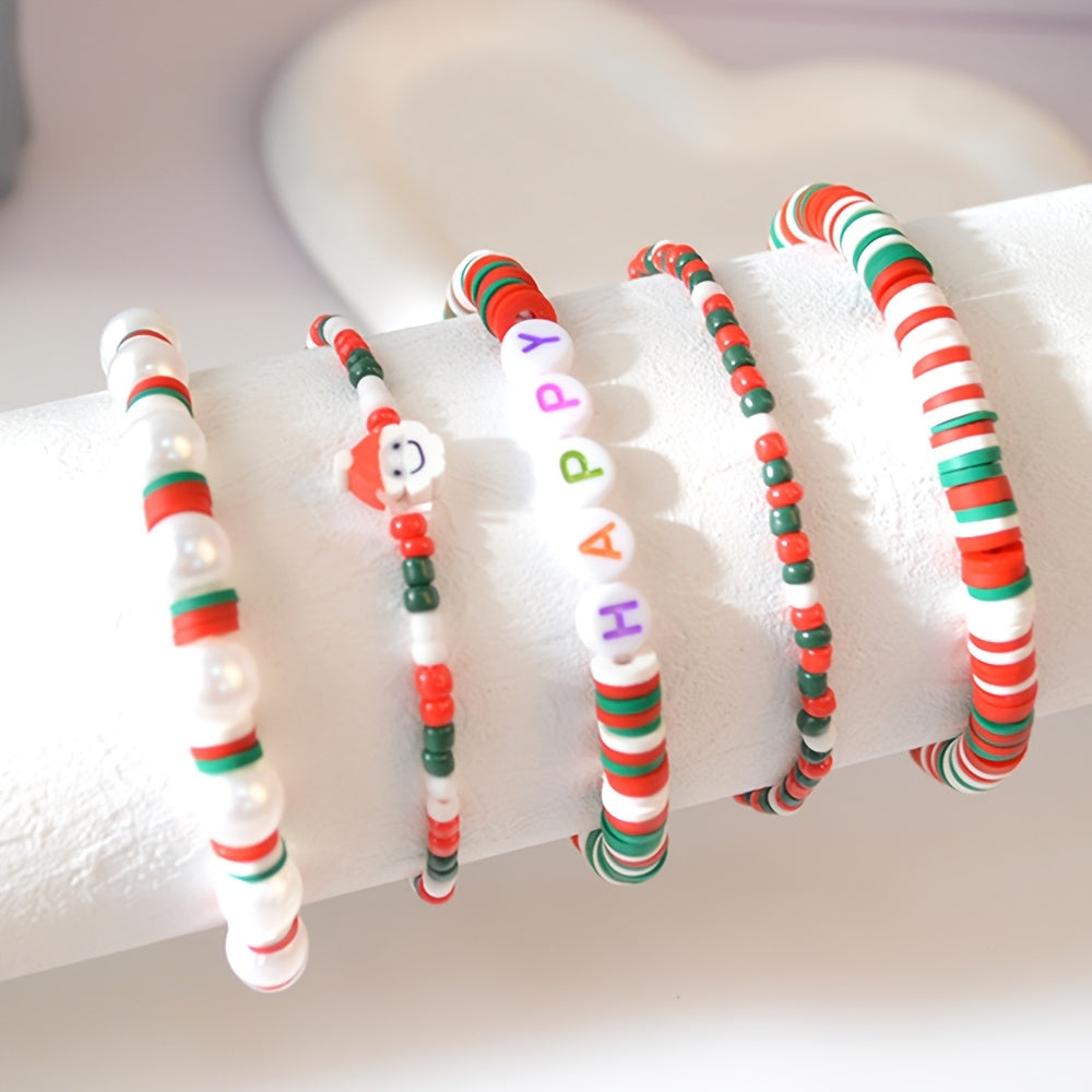 Bayramlik Rojdestvo Charm Bilaguzuklar to'plami, 10 ta sozlanadigan Polimer Silliq Bead Bilaguzuklar bilan