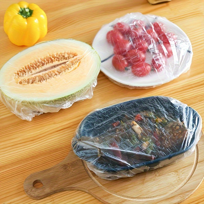 100/500 dona elastik oziq-ovqat saqlash qopqog'lari, qayta ishlatiladigan, hidi o'tkazmaydigan, chang o'tkazmaydigan