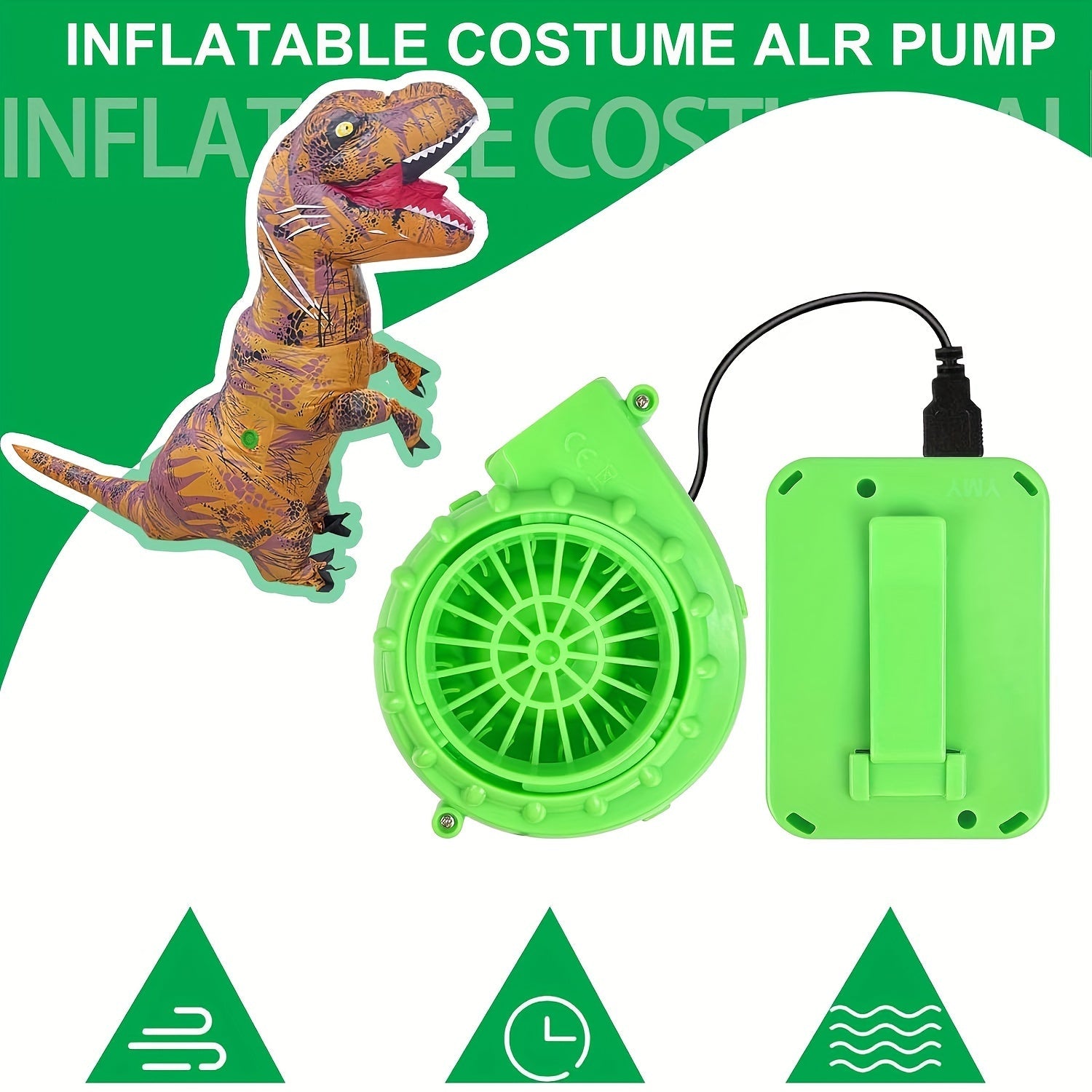 Portativ mini shishiriladigan kostyum ventilyatori Yashil USB batareyali, partiyalar, Xellouin, Rojdestvo uchun