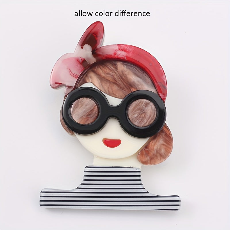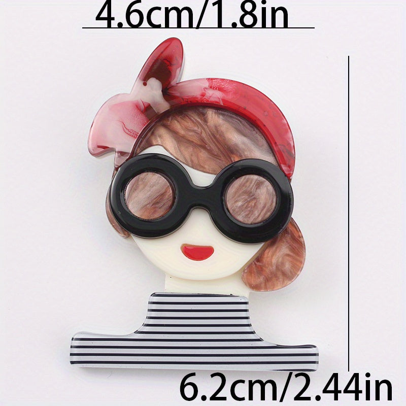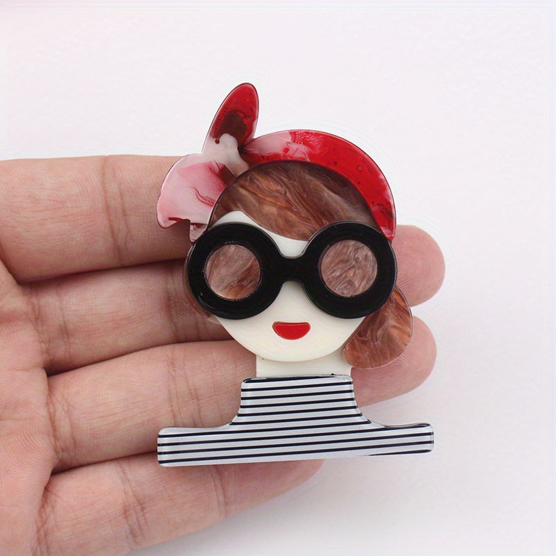 Ushbu Vintage Akril Multfilm Ko'zoynak Qiz Brosh Pin bilan retro uslubni oling! Ushbu ijodiy moda aksessuari notekis shaklga va noyob shaxsiyatga ega bo'lib, kiyimlaringiz va sumkalaringizga rang-baranglik qo'shish uchun mukammal belgi hisoblanadi.