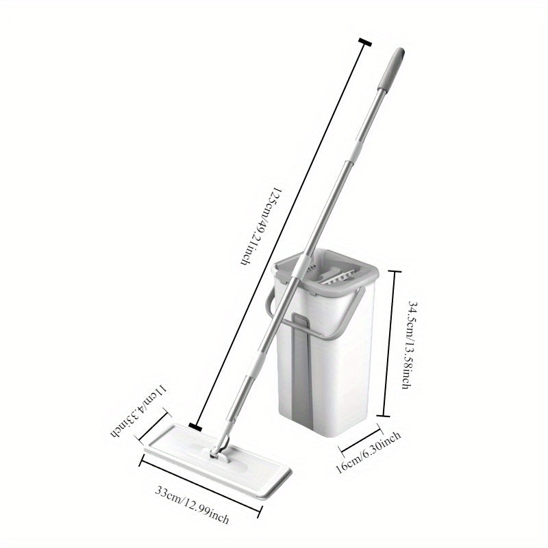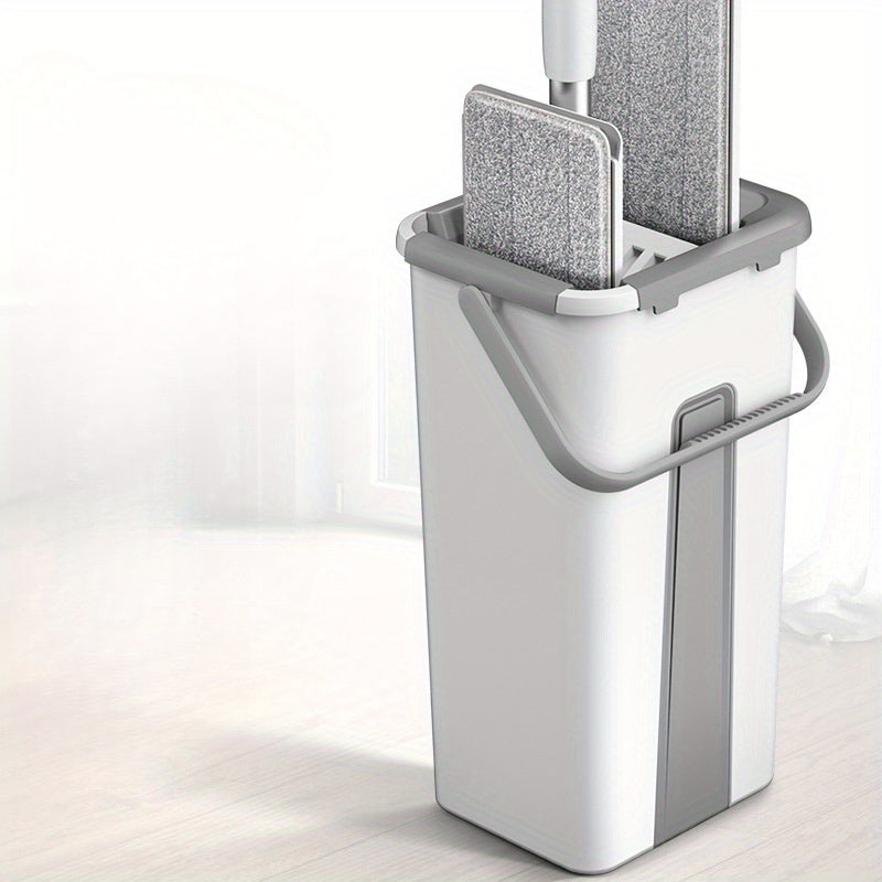 Tozalash va yuvish uchun tekis mop va kova to'plami, qayta ishlatiladigan, ko'p qavatli yuzalar uchun