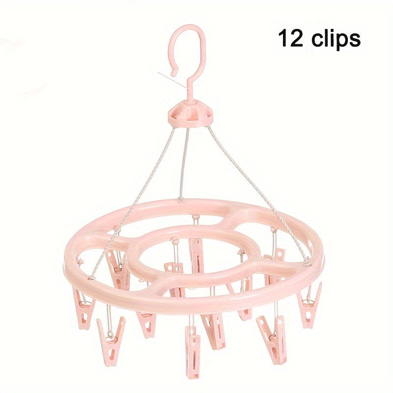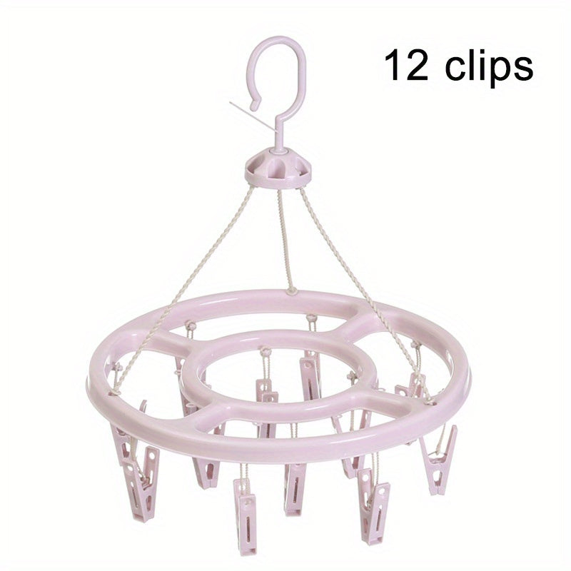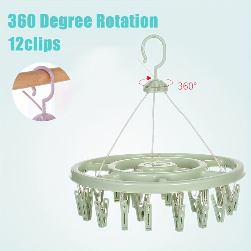 12 ta klipli dumaloq plastmassa quritish qafasi, 360° aylanish bilan, paypoq va kiyimlar uchun saqlash